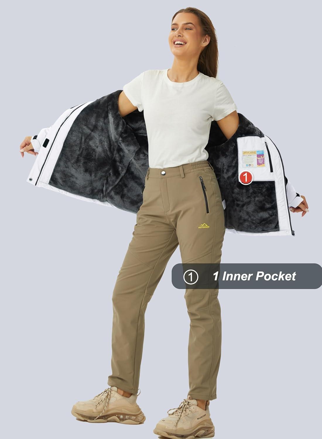 MAGCOMSEN Womens Ski Jacket Waterproof Insulated Snow Jacket Warm Windproof Winter Coats with Hood Fleece Lined Jacket(White)