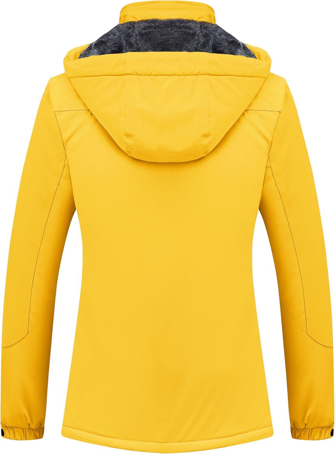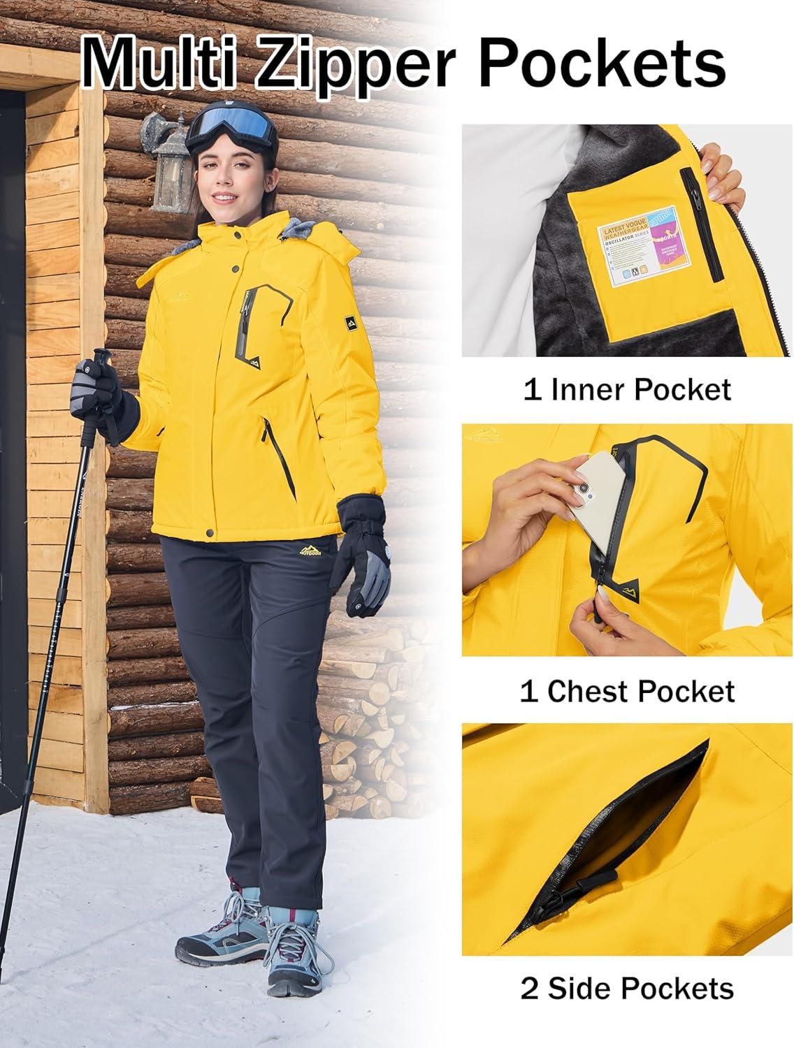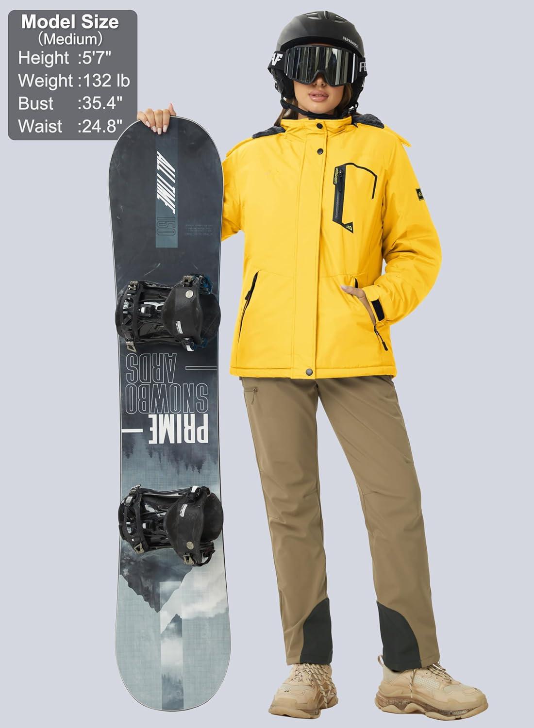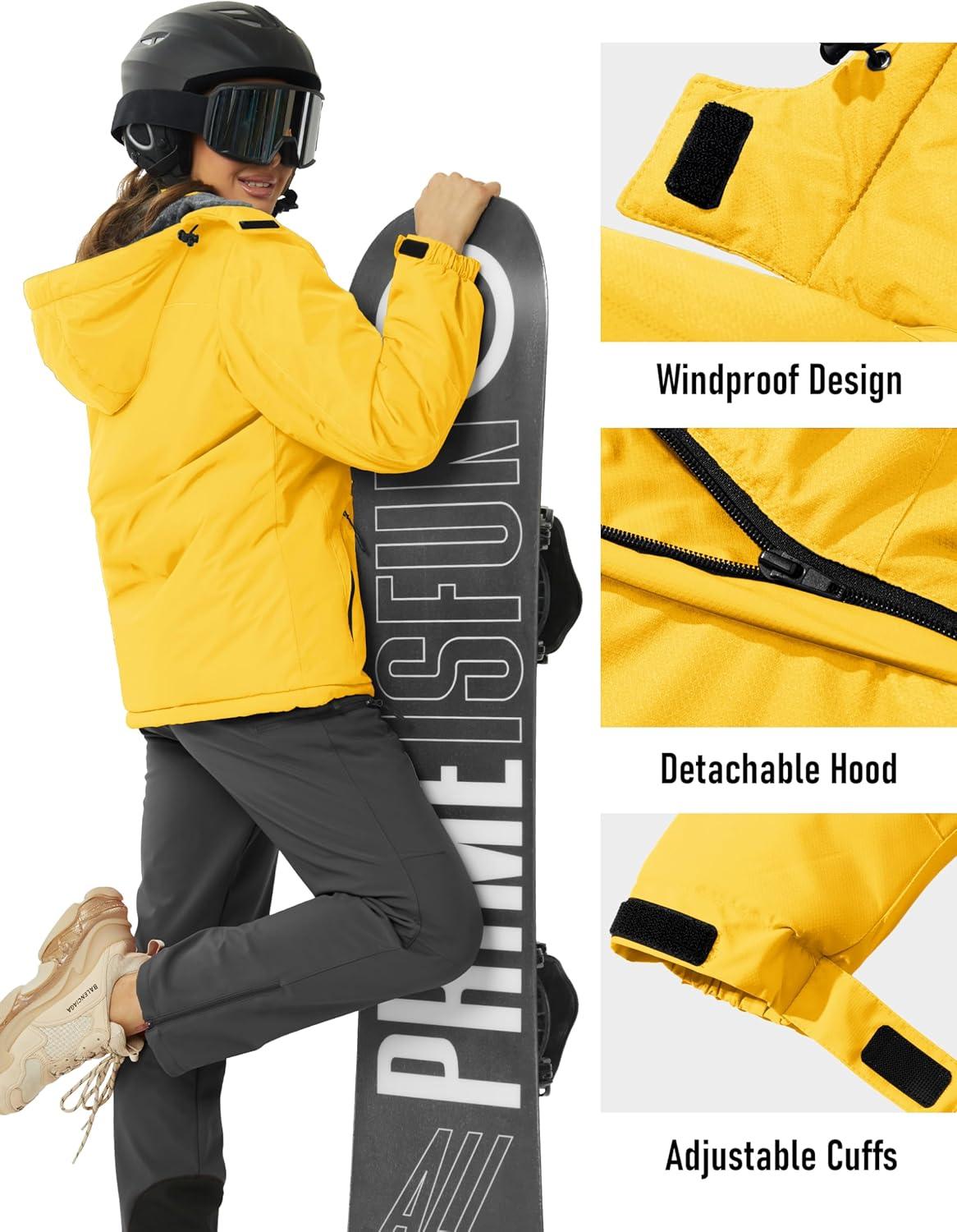 MAGCOMSEN Womens Ski Jacket Waterproof Insulated Snow Jacket Warm Windproof Winter Coats with Hood Fleece Lined Jacket(Yellow)