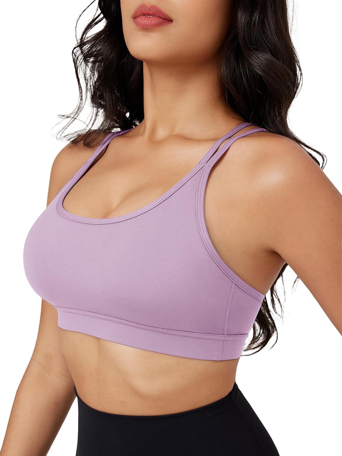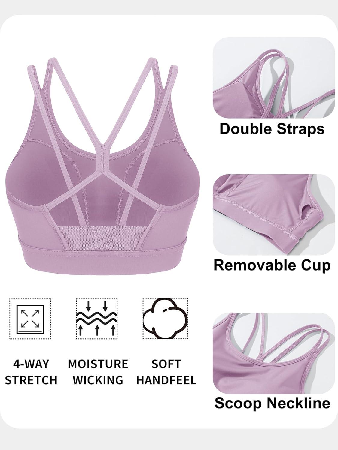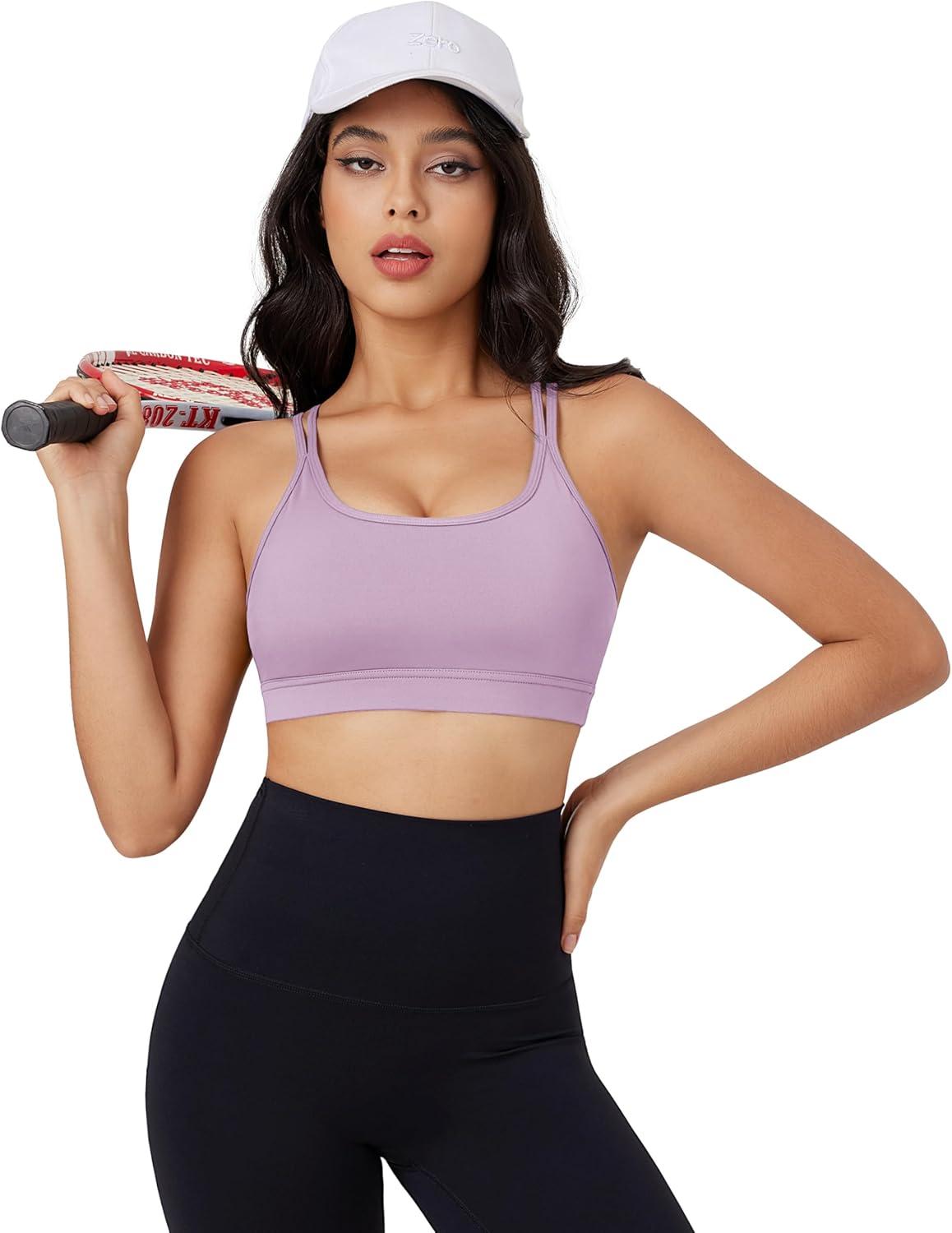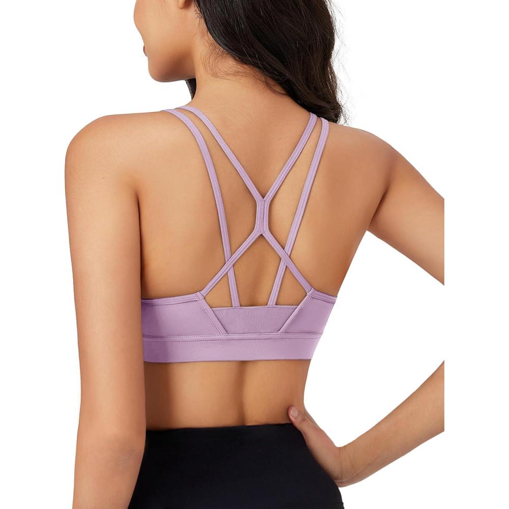 MAGCOMSEN Womens Strappy Sports Bra Padded Backless Sexy Low Impact Moisture-Wicking Wireless for Yoga Workout Fitness(Grayish Purple)