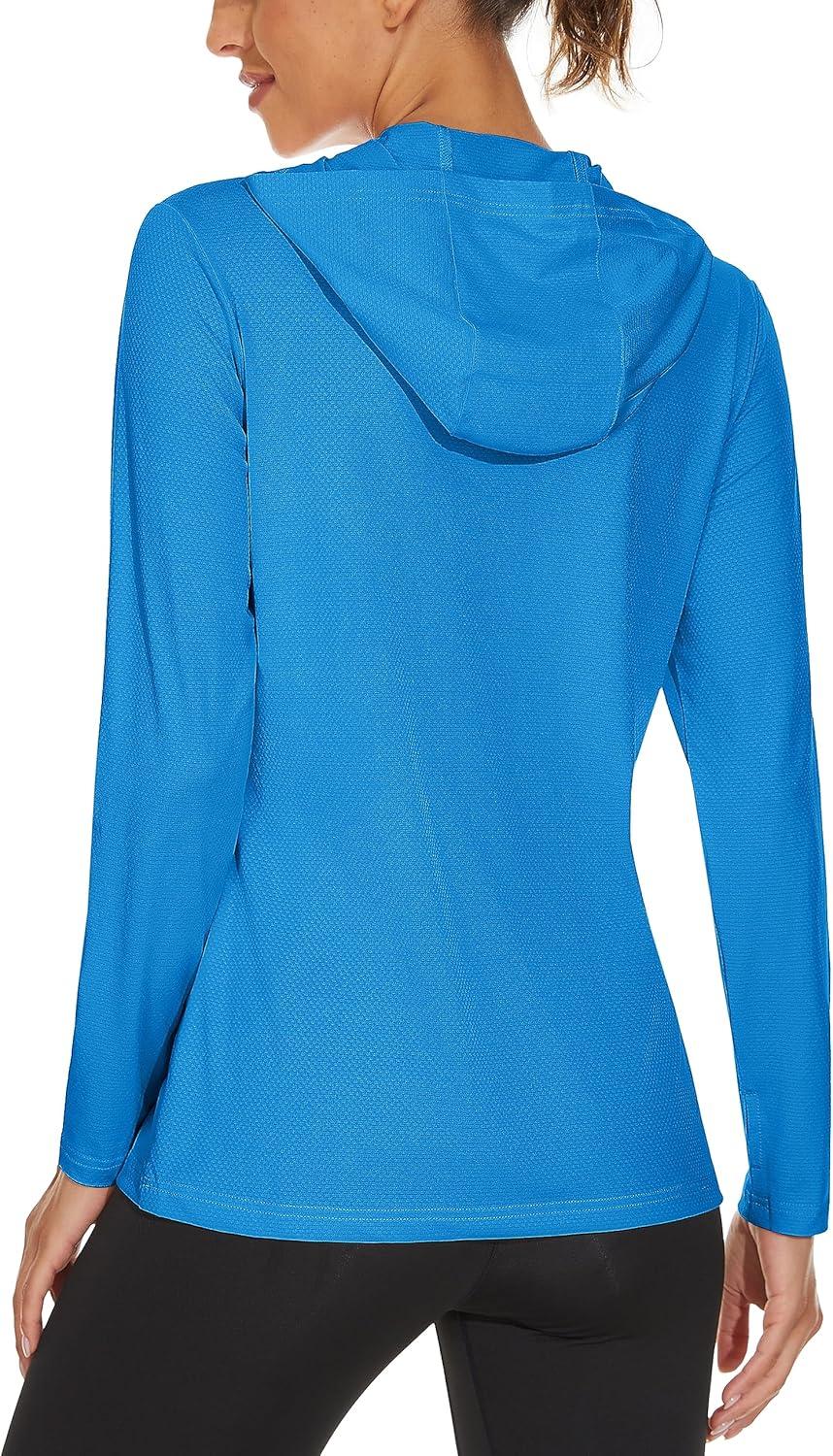 MAGCOMSEN Women’s Sun Hoodie UPF 50+ Long Sleeve Shirts for Hiking Fishing Athletic Lightweight UV Hoodie(Blue Green)