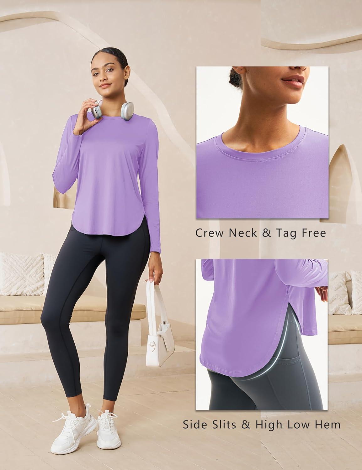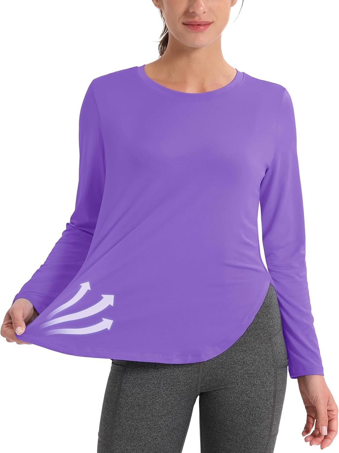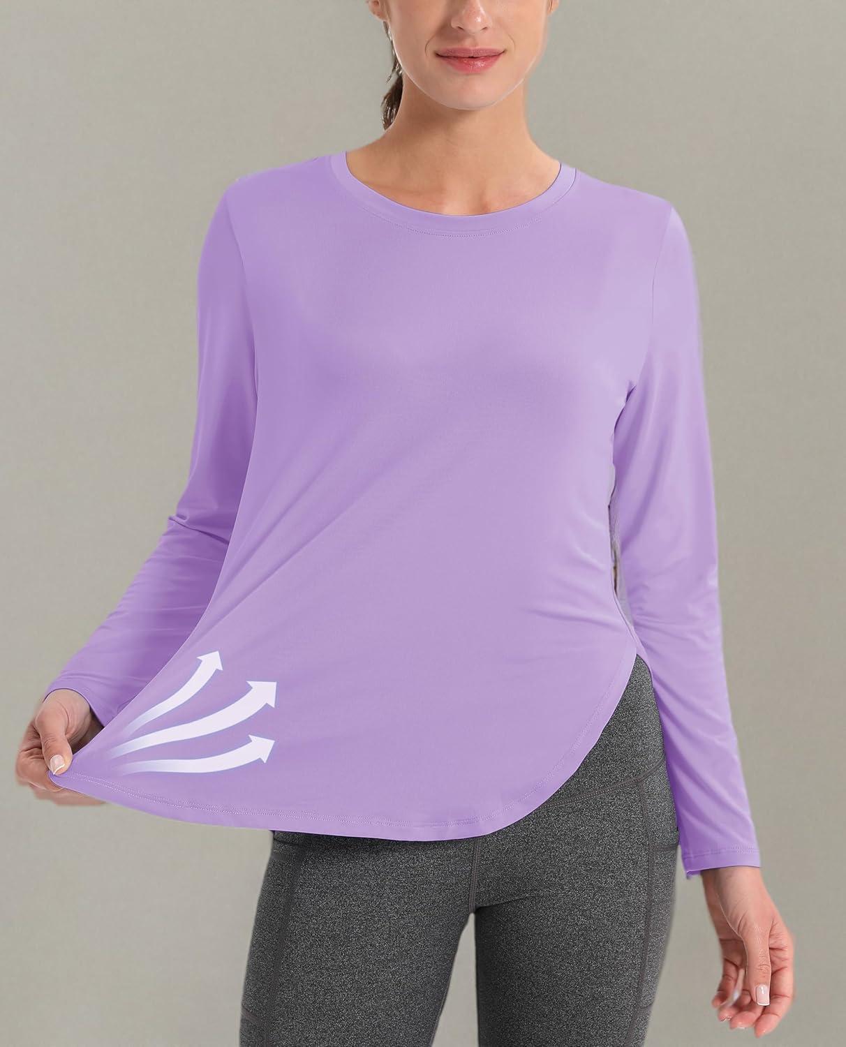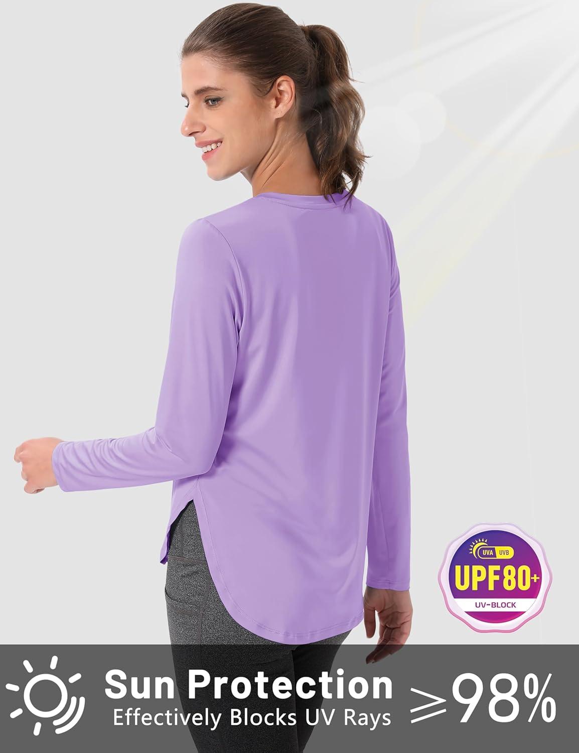 MAGCOMSEN Women’s Sun Shirts SPF Long Sleeve Workout Tops Athletic UV Protection UPF 80+ Quick Dry T Shirt(Light Purple)
