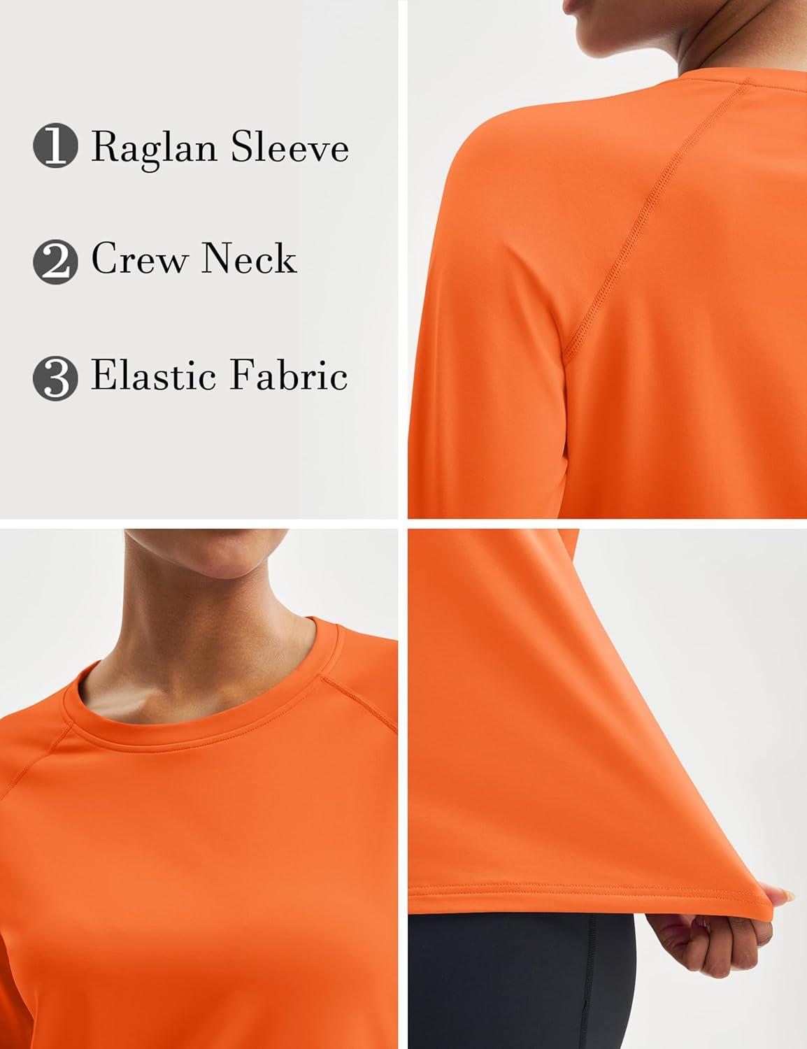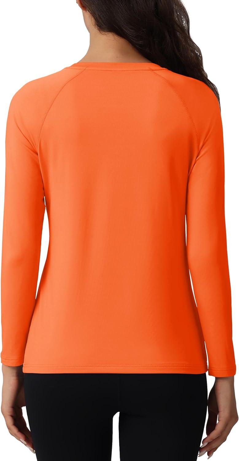 MAGCOMSEN Women’s Thermal Shirts Fleece Pullover Long Sleeve Undershirt Tops Warm Workout Winter Base Layer(Orange)