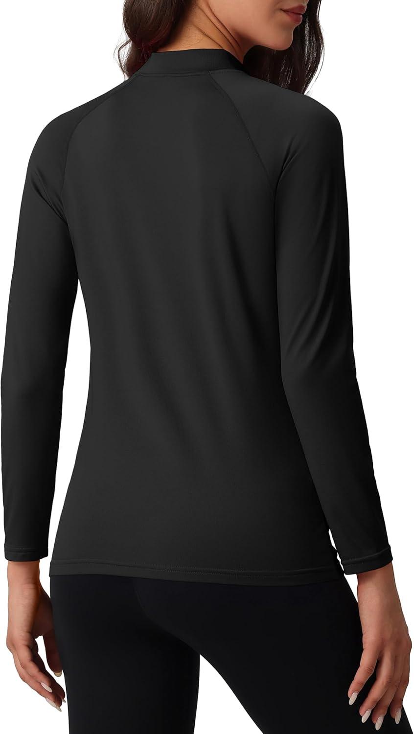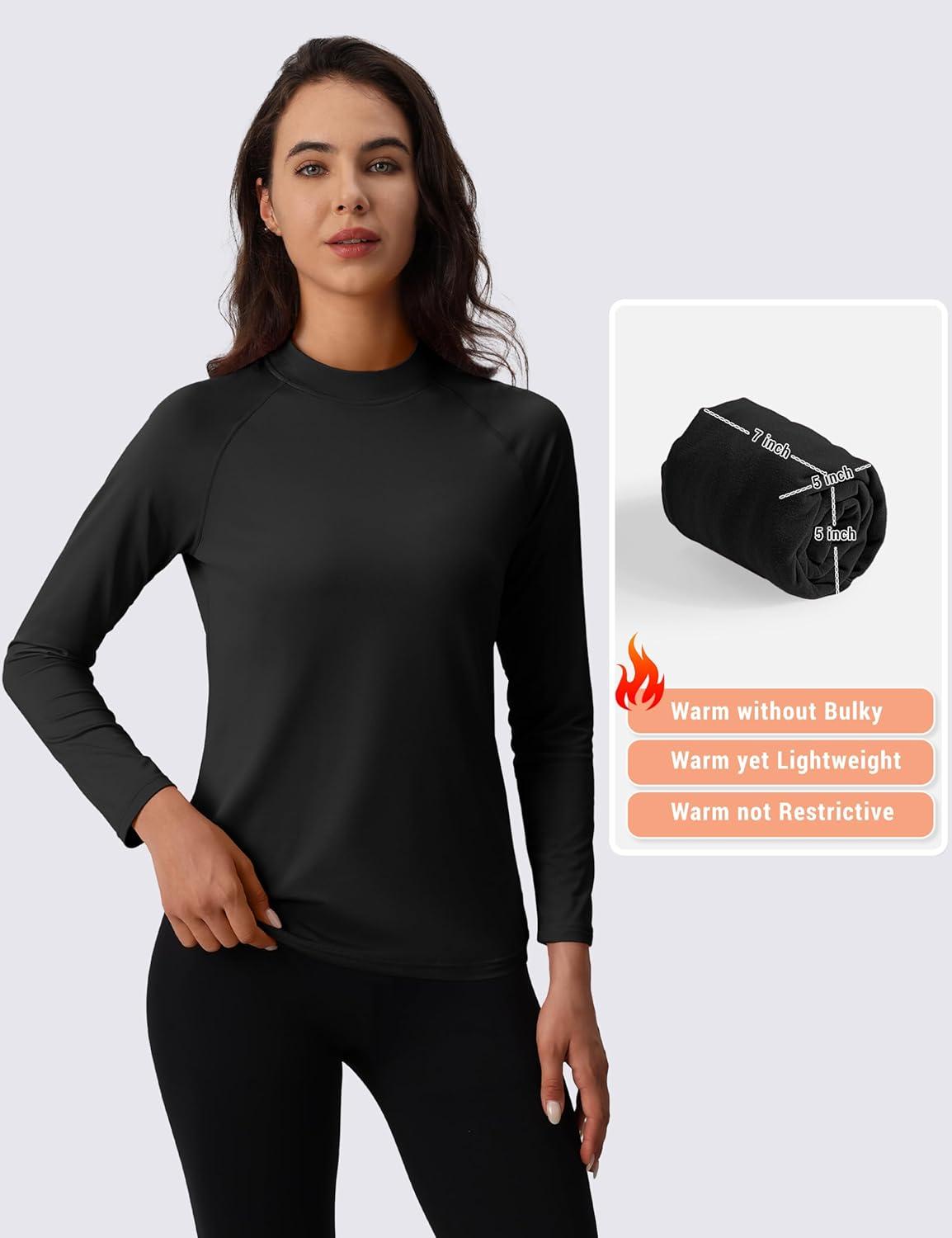 MAGCOMSEN Women’s Thermal Shirts Mock Turtleneck Fleece Lined Long Sleeve Workout Tops Underwear Base Layer Running(Black)