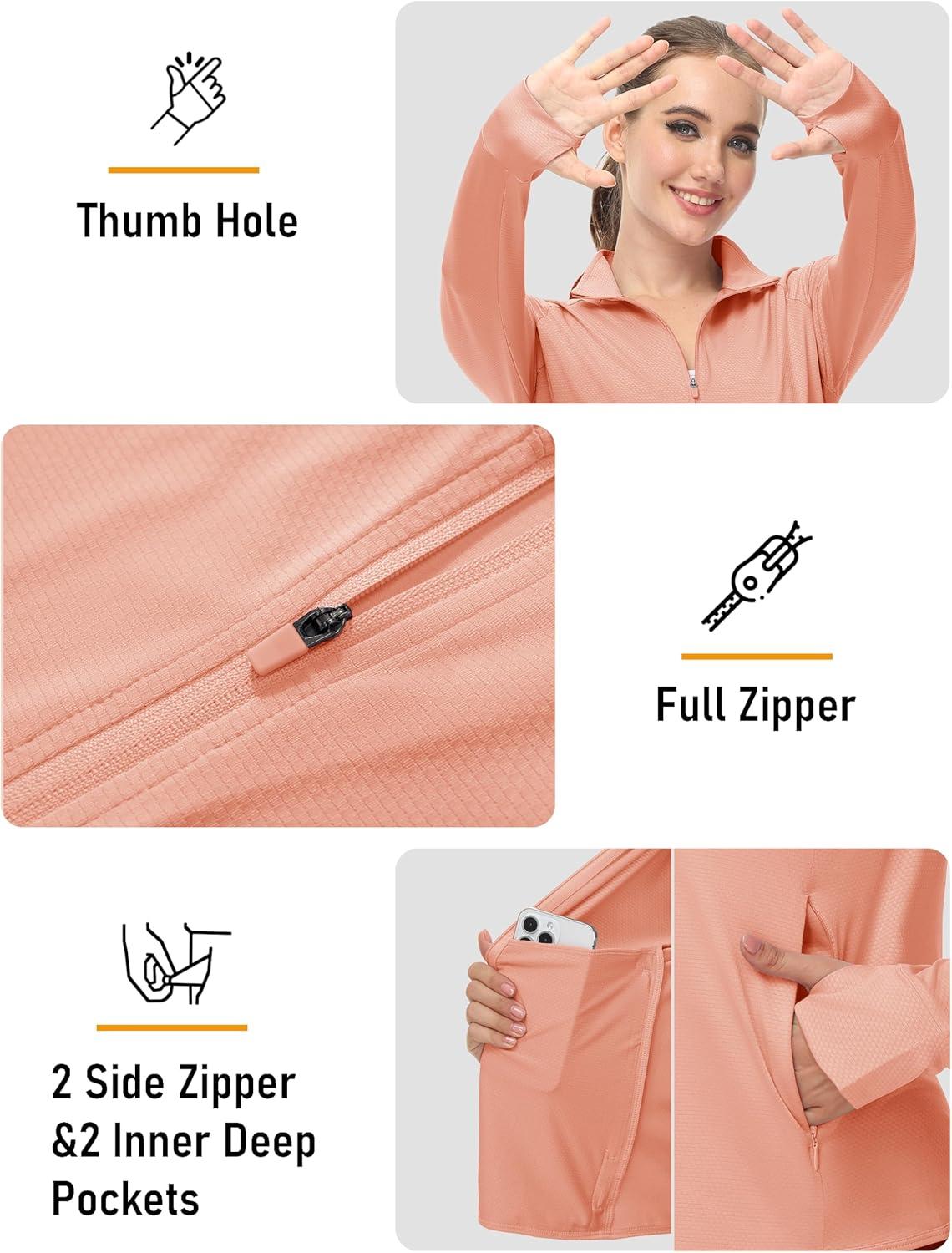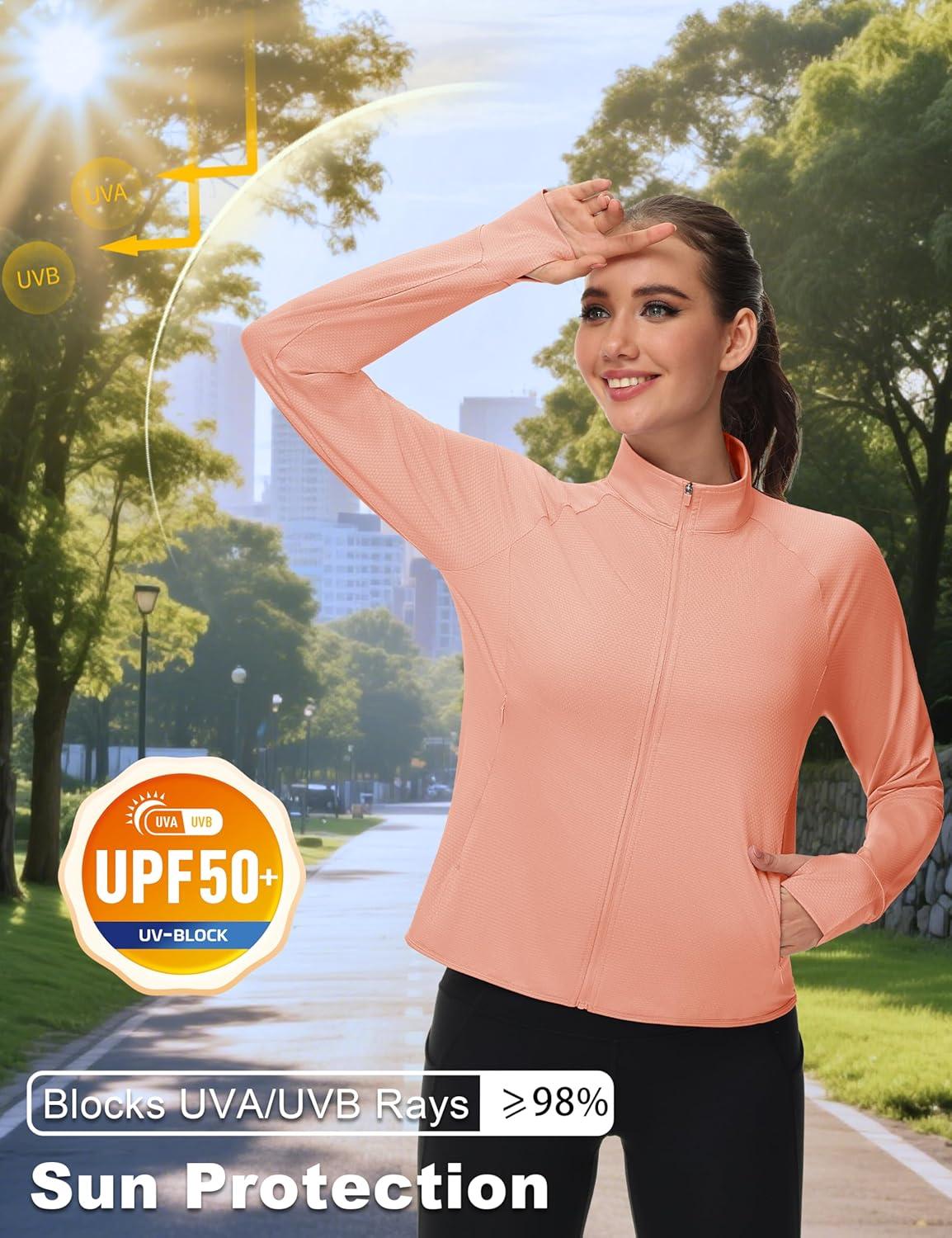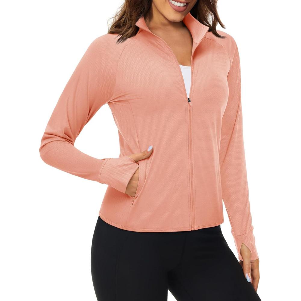 MAGCOMSEN Women’s UPF 50+ Lightweight Zip Up Jackets Cropped Athletic Workout UV Protection Sun Shirt Running(Apricot)