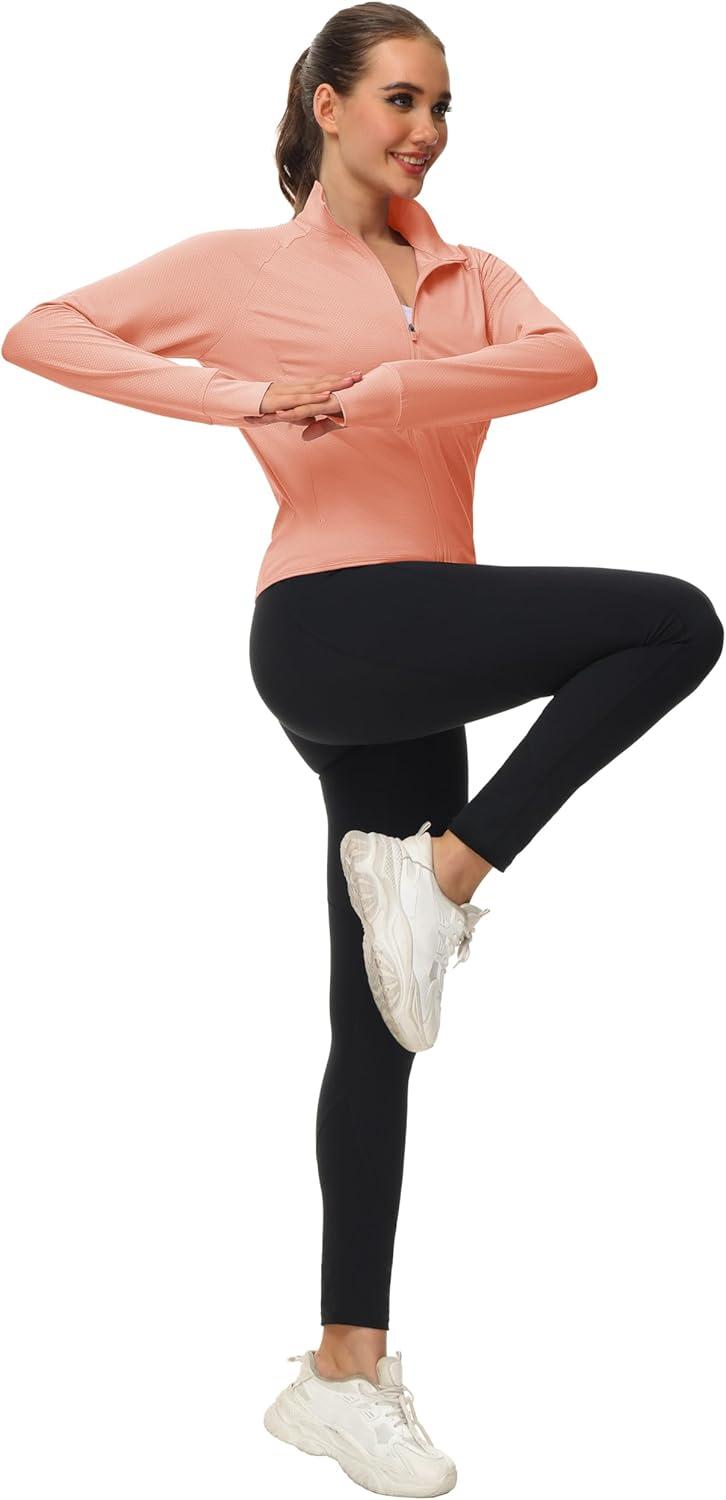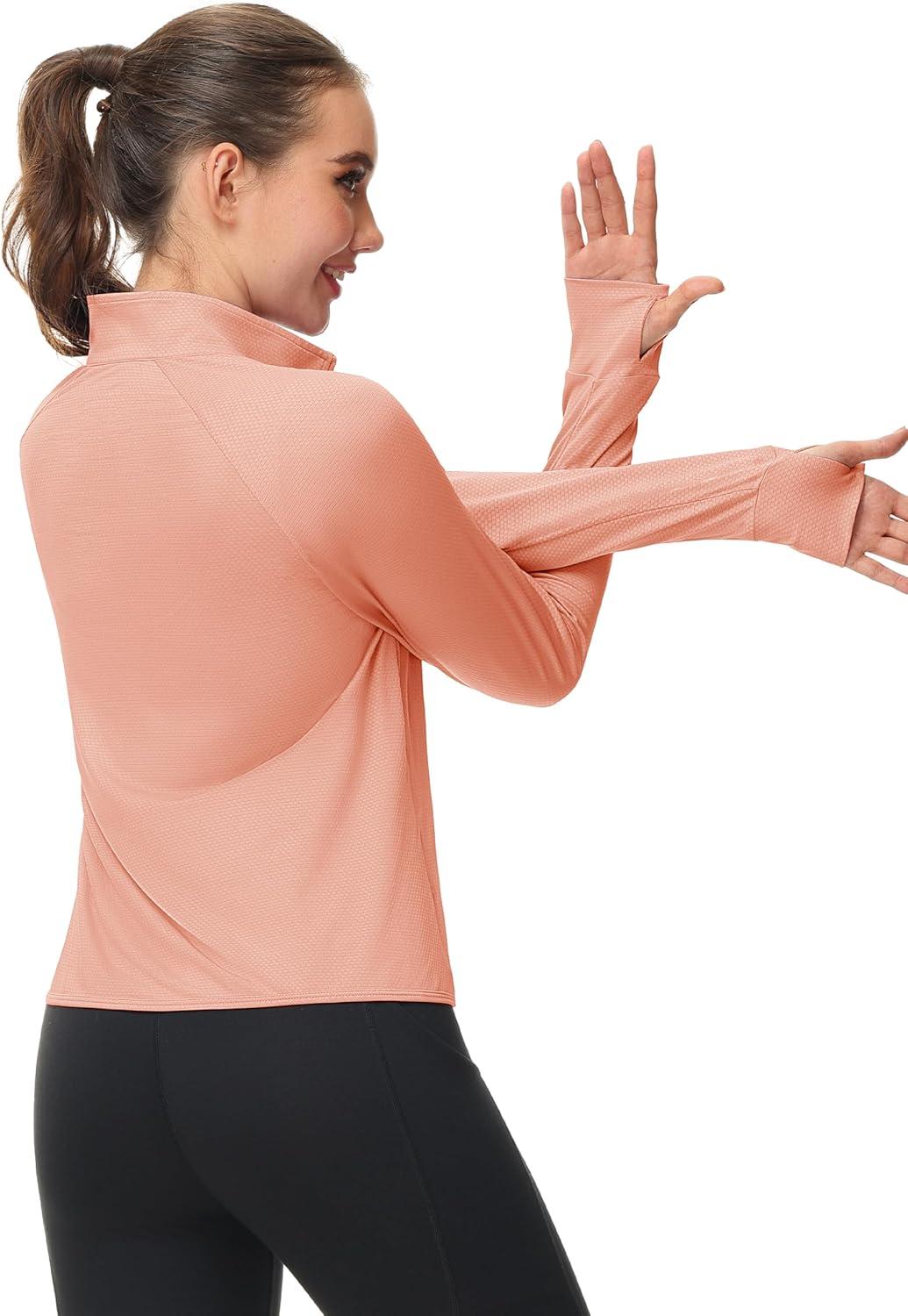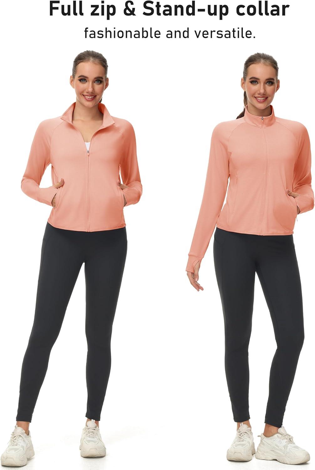MAGCOMSEN Women’s UPF 50+ Lightweight Zip Up Jackets Cropped Athletic Workout UV Protection Sun Shirt Running(Apricot)