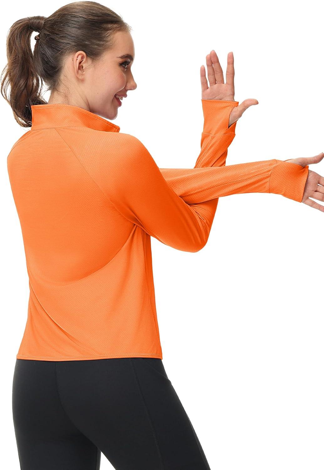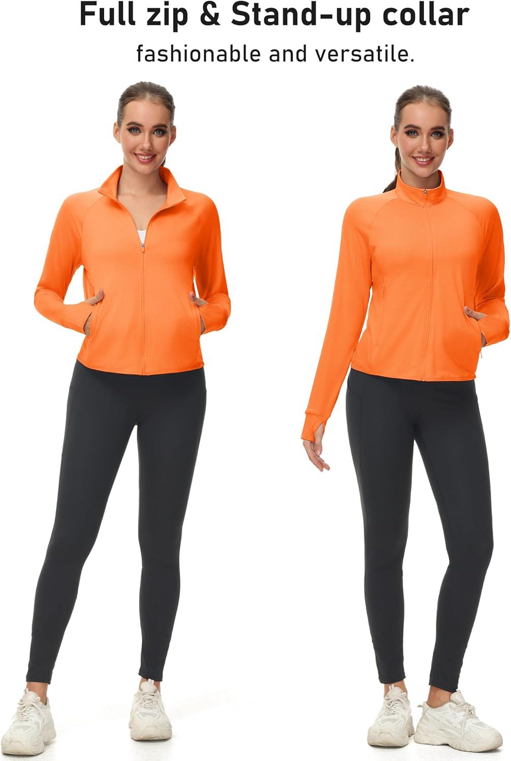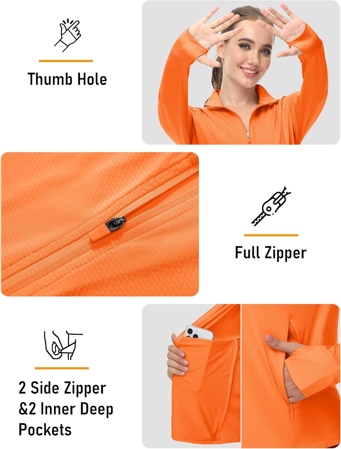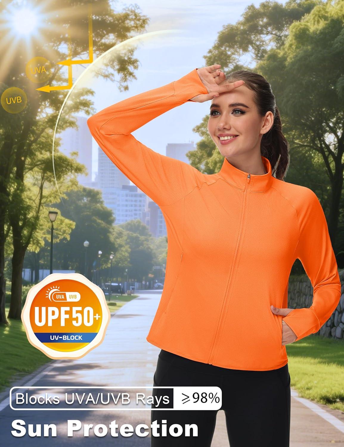 MAGCOMSEN Women’s UPF 50+ Lightweight Zip Up Jackets Cropped Athletic Workout UV Protection Sun Shirt Running(Orange)