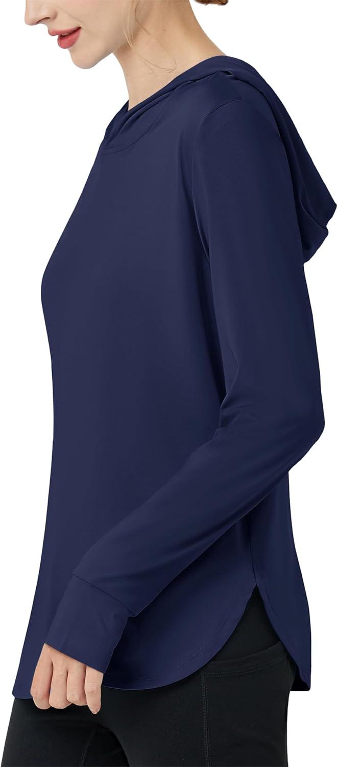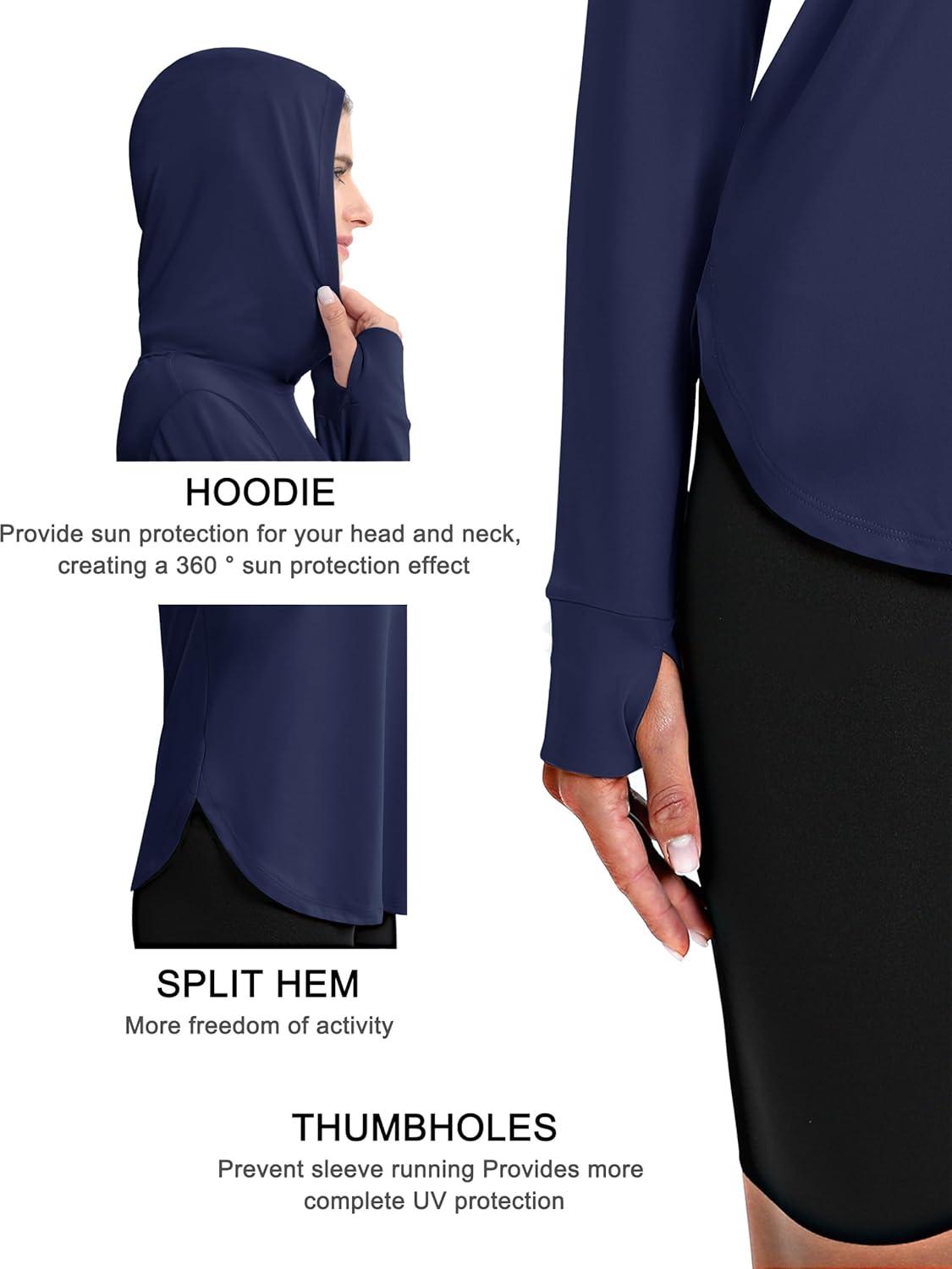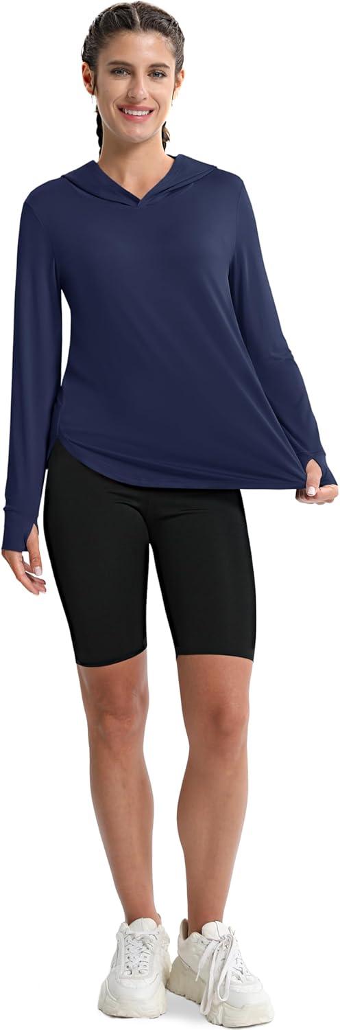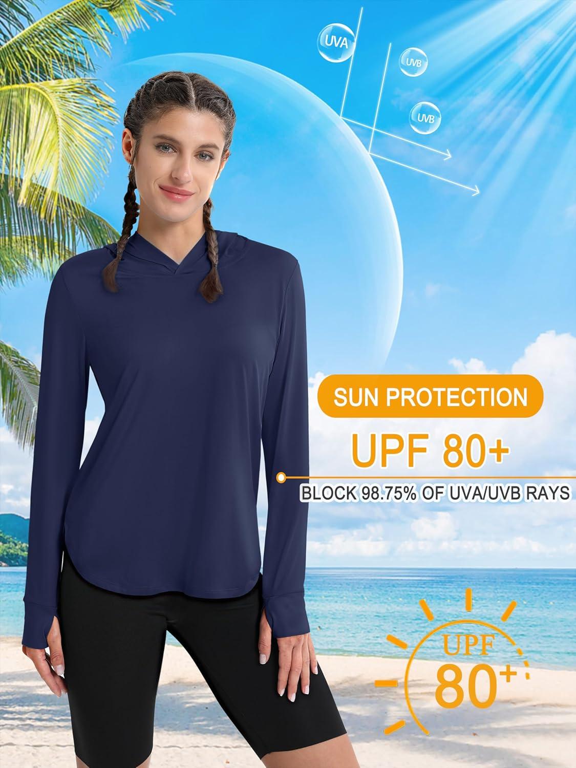MAGCOMSEN Women’s UPF 80+ Sun Protection Hoodie Long Sleeve Hiking Fishing Lightweight UV Rashguard with Thumb Hole(Navy)