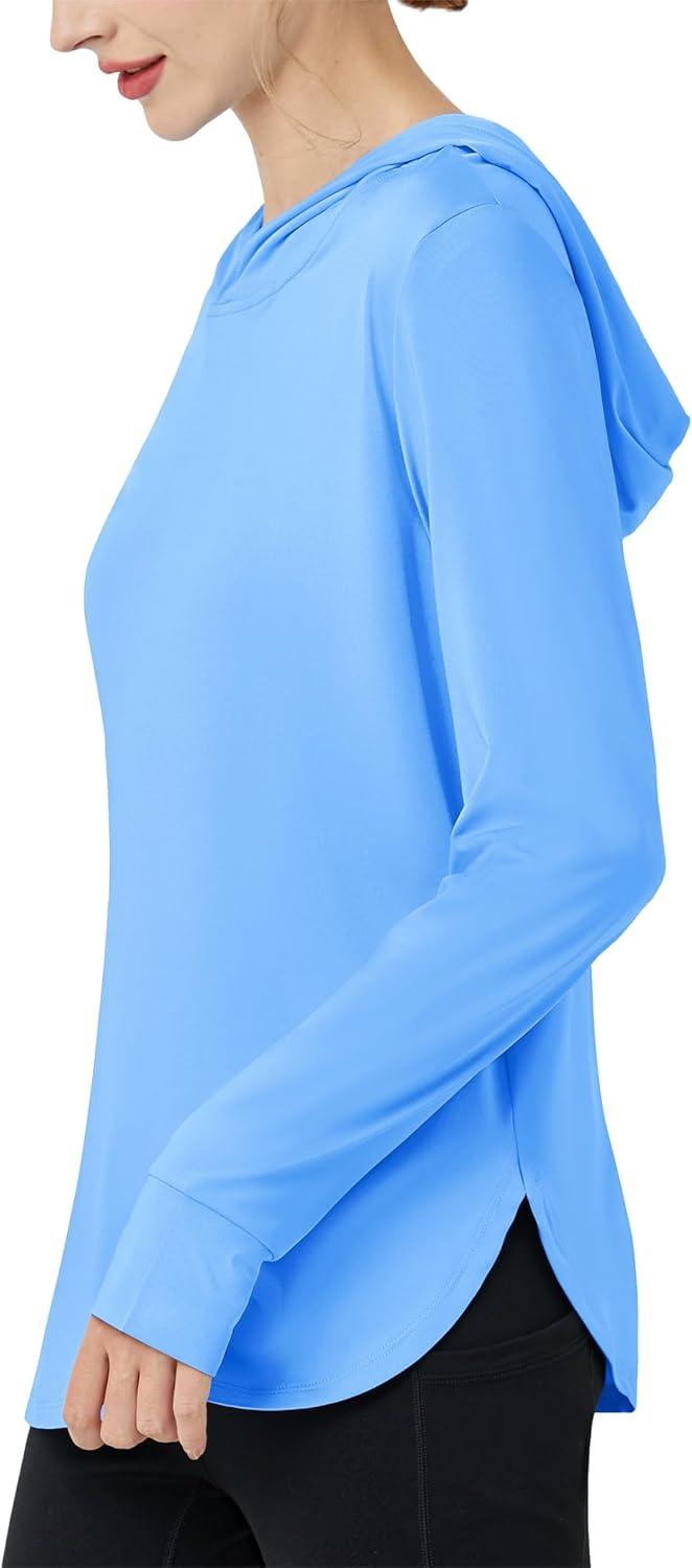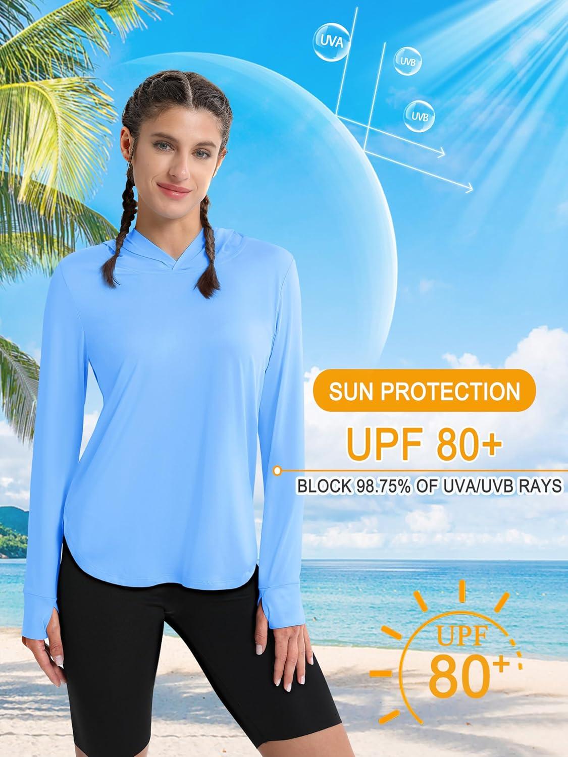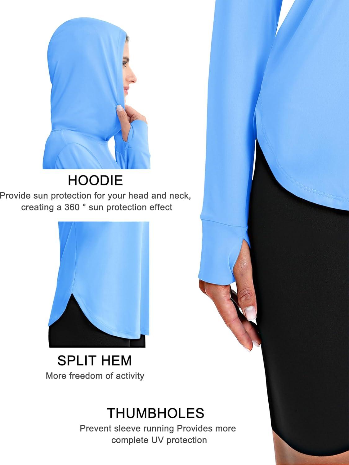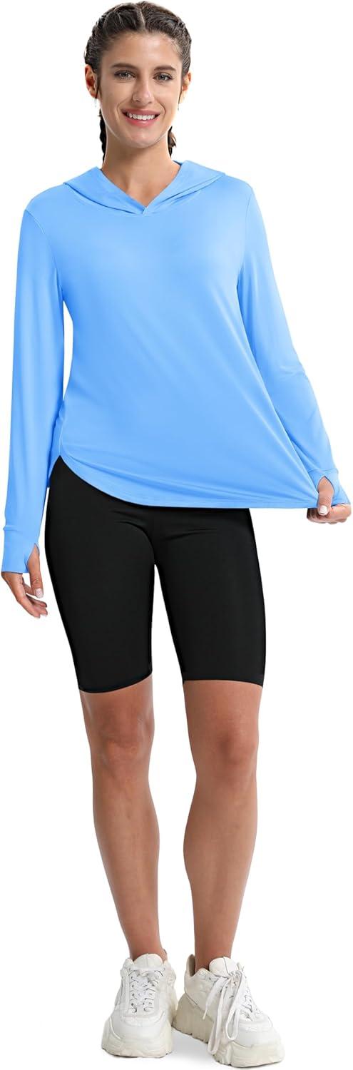 MAGCOMSEN Women’s UPF 80+ Sun Protection Hoodie Long Sleeve Hiking Fishing Lightweight UV Rashguard with Thumb Hole(Sky Blue)