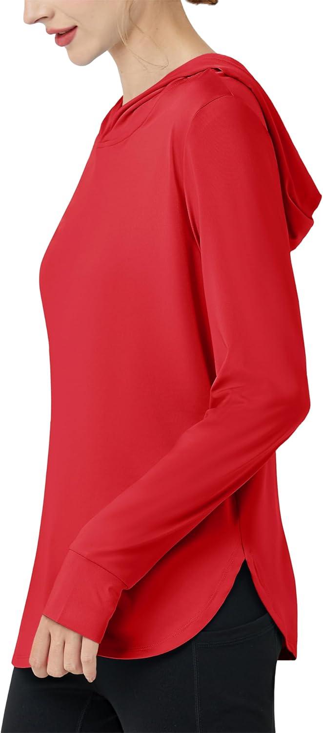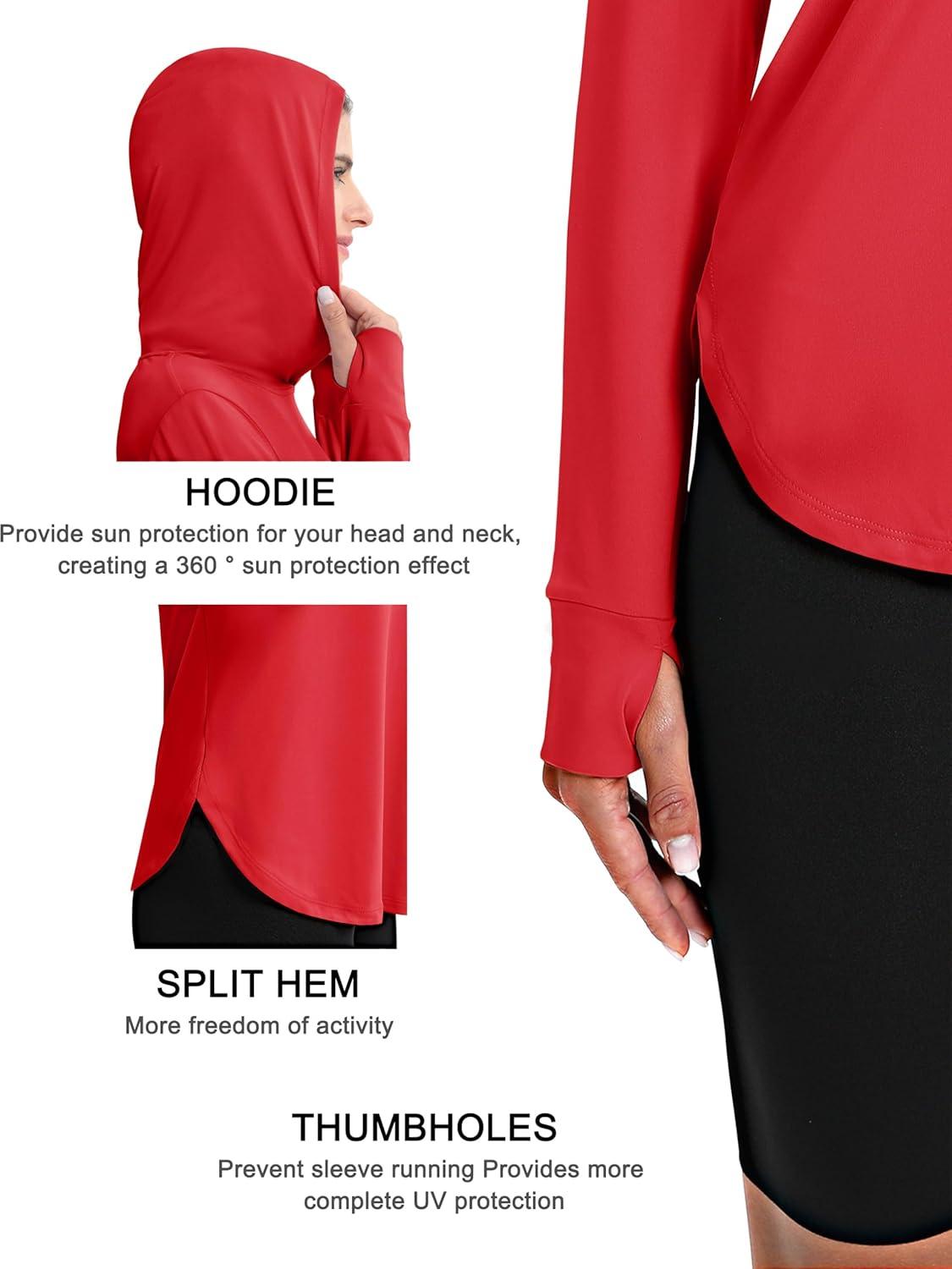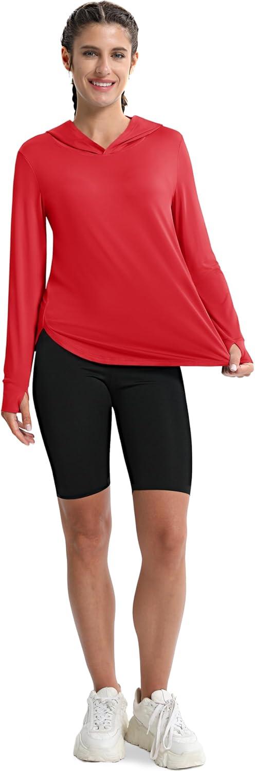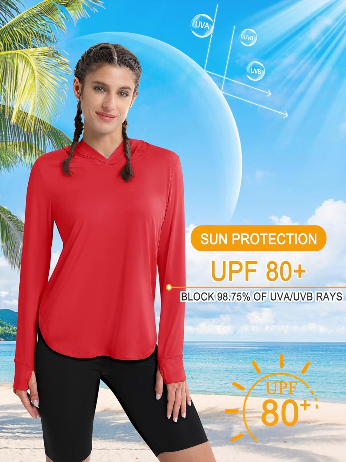 MAGCOMSEN Women’s UPF 80+ Sun Protection Hoodie Long Sleeve Hiking Fishing Lightweight UV Rashguard with Thumb Hole(Tomato Red)