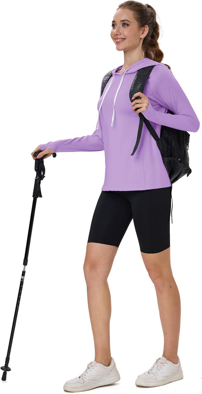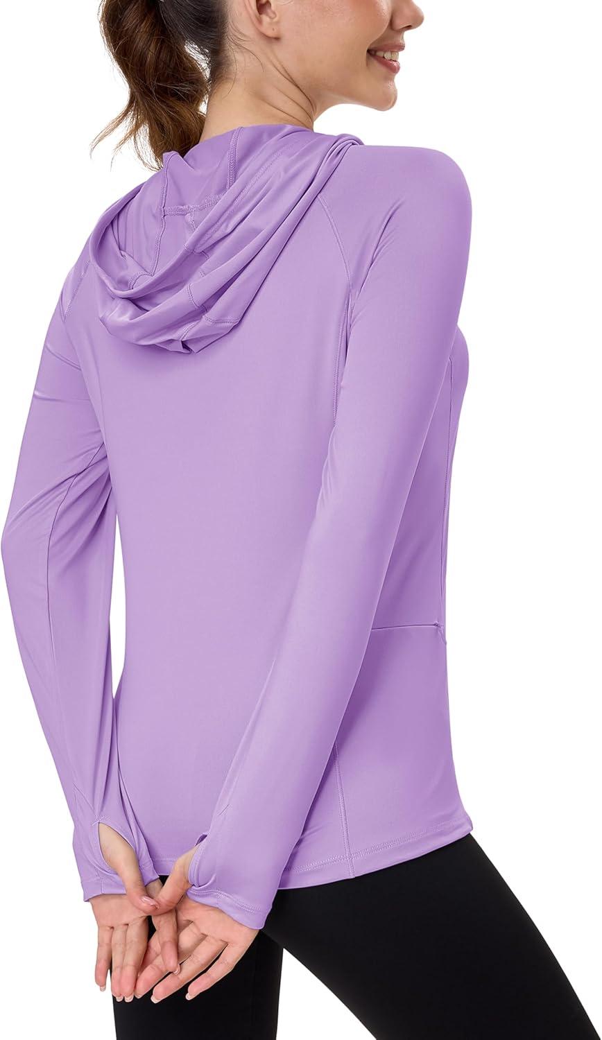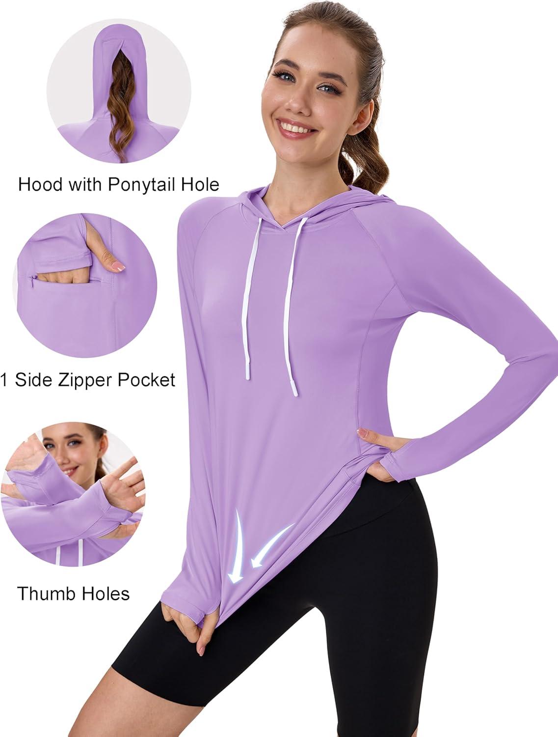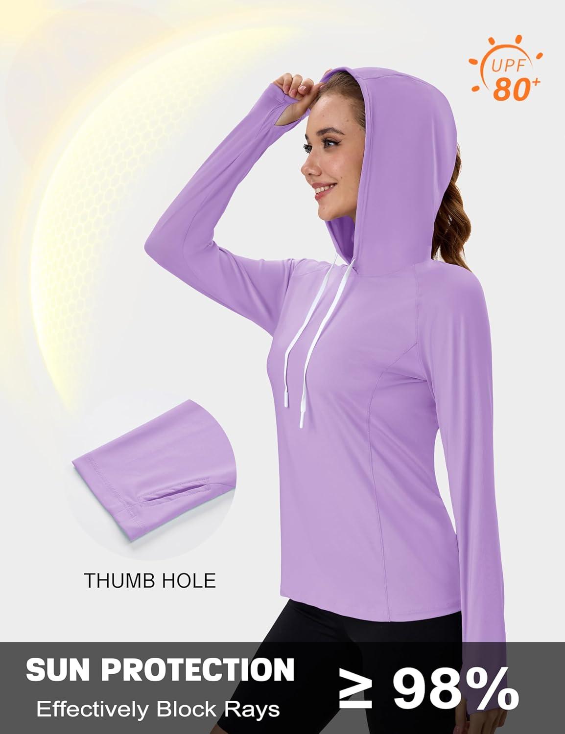 MAGCOMSEN Women’s UPF 80+ Sun Protection Hoodie Shirt Long Sleeve Outdoor Hiking Fishing Rash Guard with Pocket(Lightpurple)