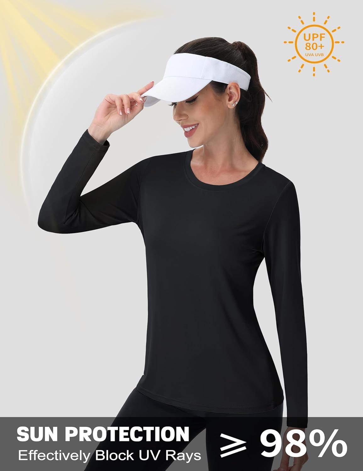 MAGCOMSEN Women’s UPF 80+ Workout Shirts Long Sleeve Atheltic T-Shirt Quick Dry Rash Guard Swim Tops(Black)