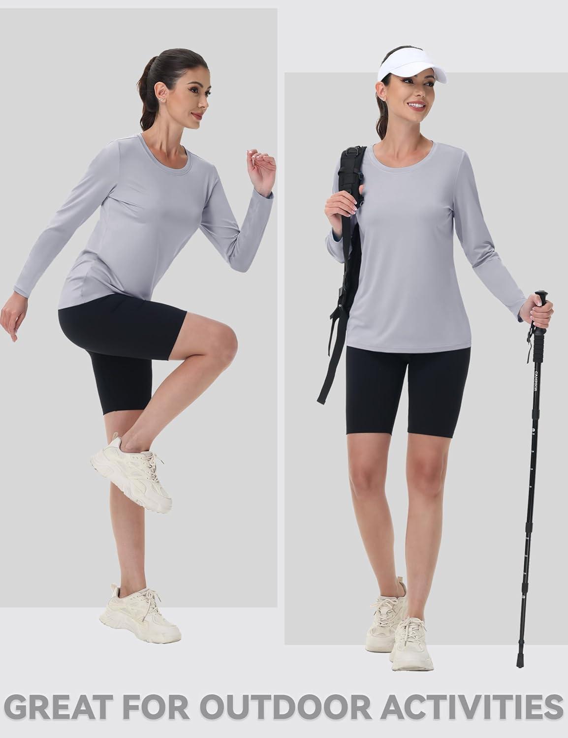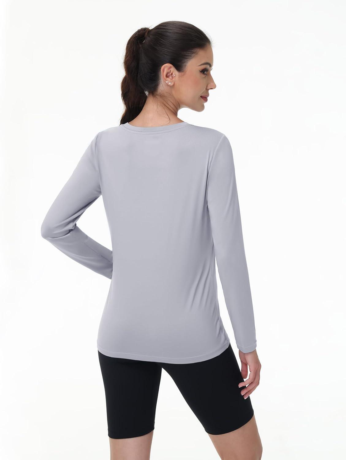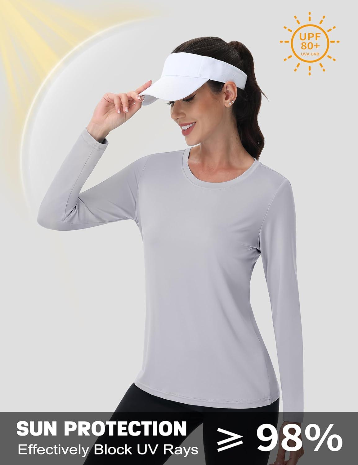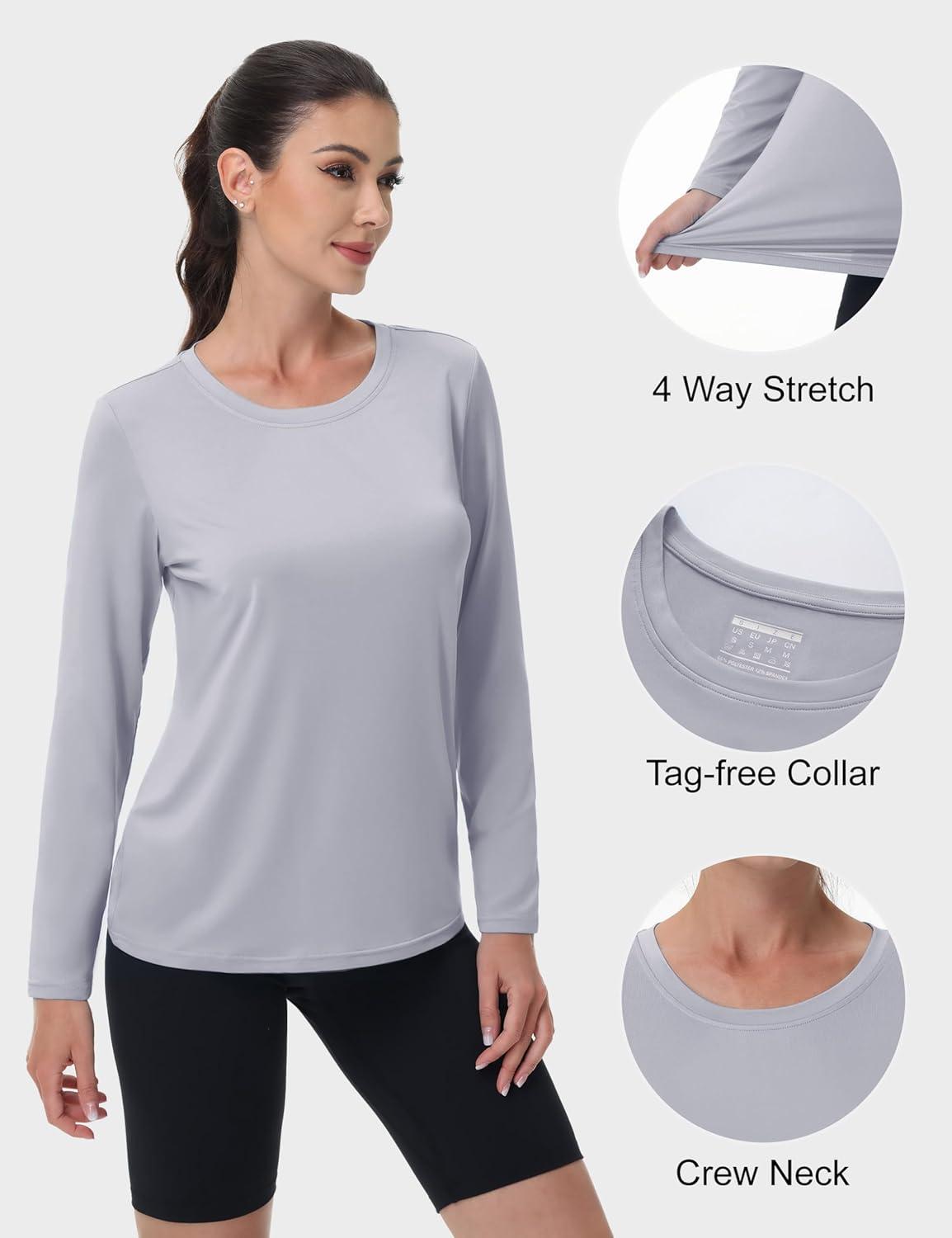 MAGCOMSEN Women’s UPF 80+ Workout Shirts Long Sleeve Atheltic T-Shirt Quick Dry Rash Guard Swim Tops(Light Grey)