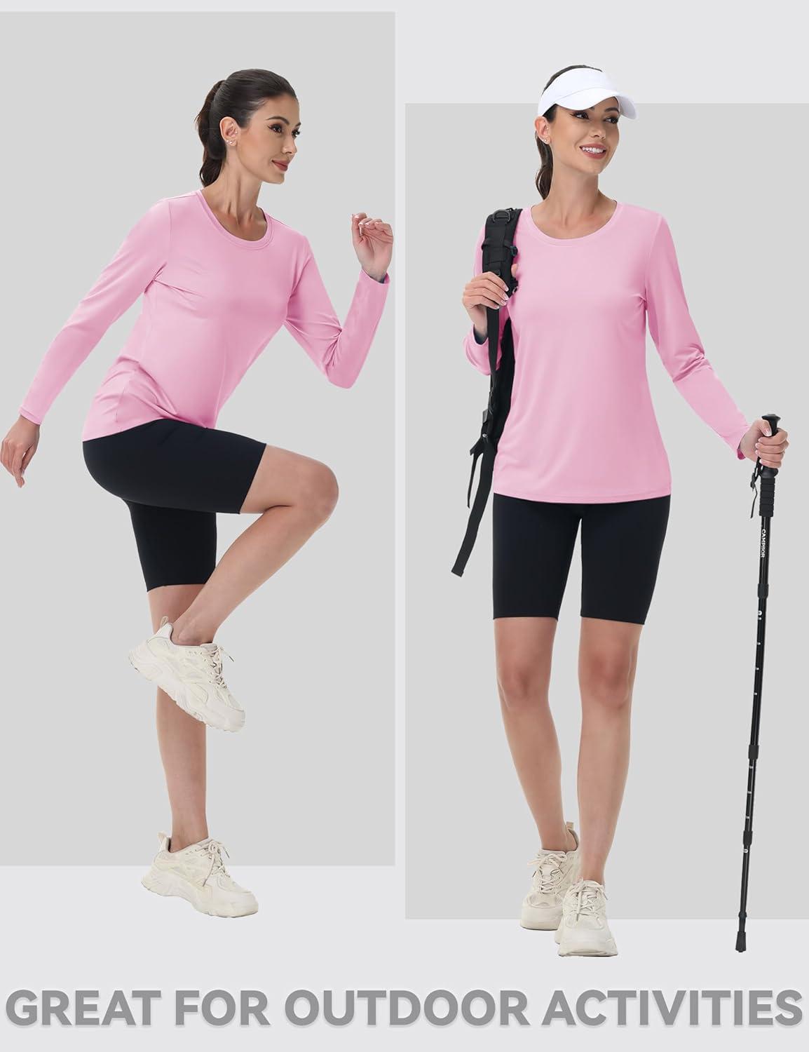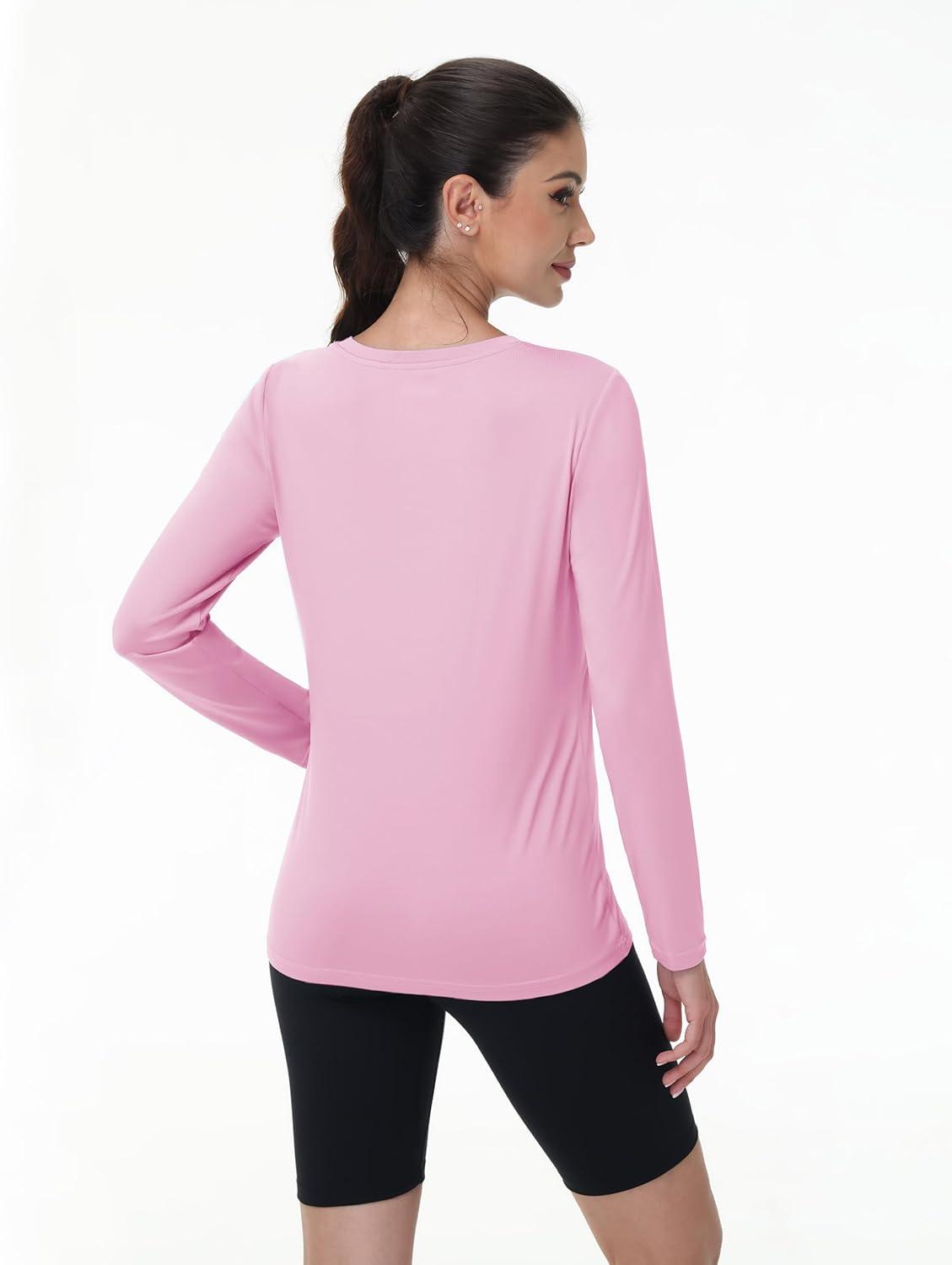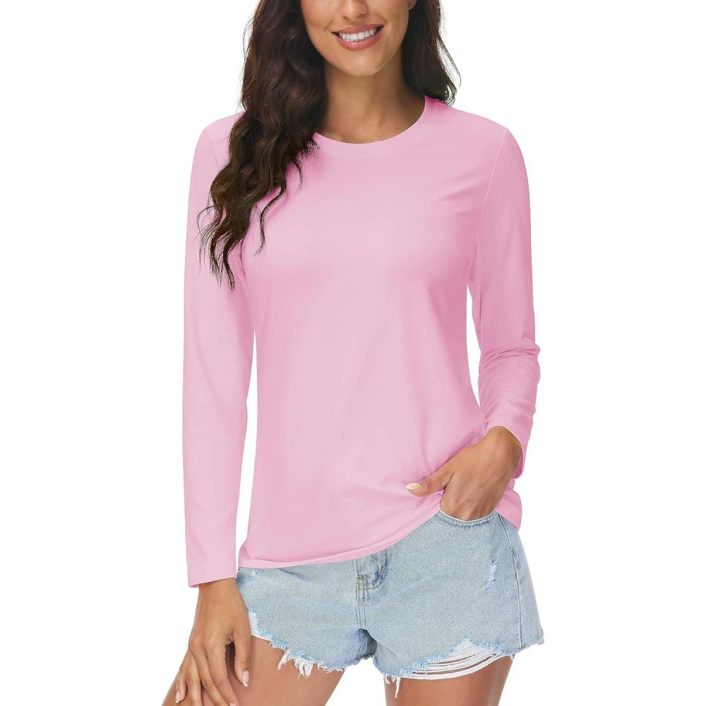 MAGCOMSEN Women’s UPF 80+ Workout Shirts Long Sleeve Atheltic T-Shirt Quick Dry Rash Guard Swim Tops(Light Pink)
