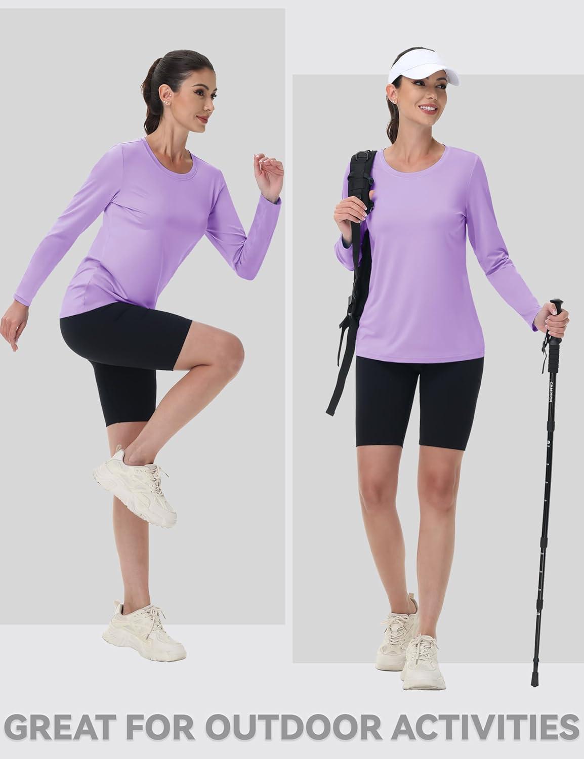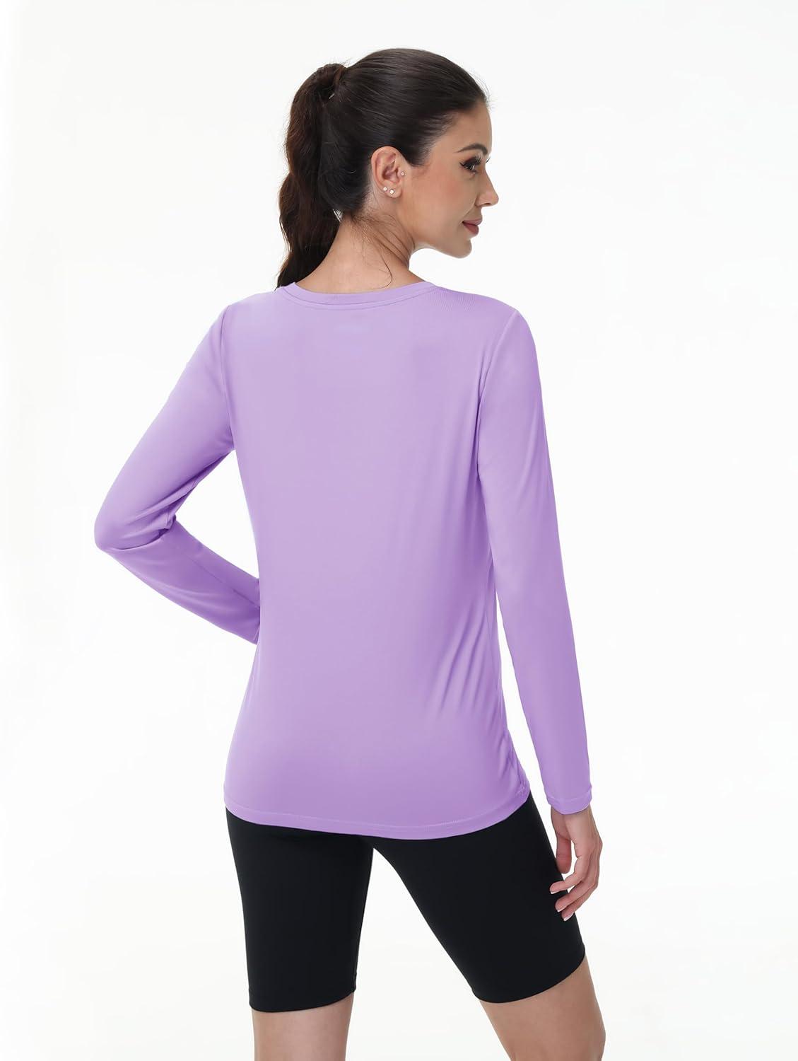 MAGCOMSEN Women’s UPF 80+ Workout Shirts Long Sleeve Atheltic T-Shirt Quick Dry Rash Guard Swim Tops(Light Purple)