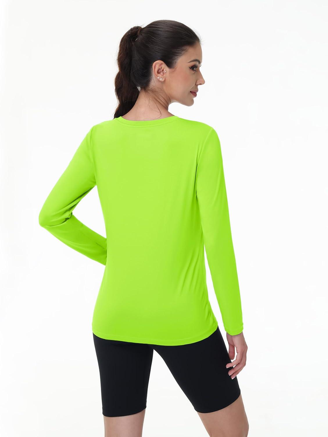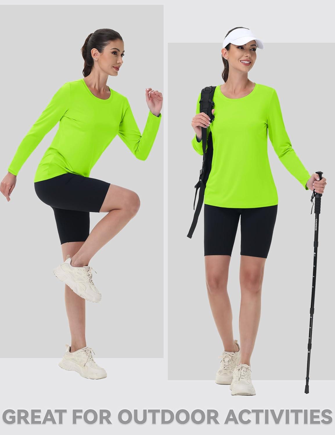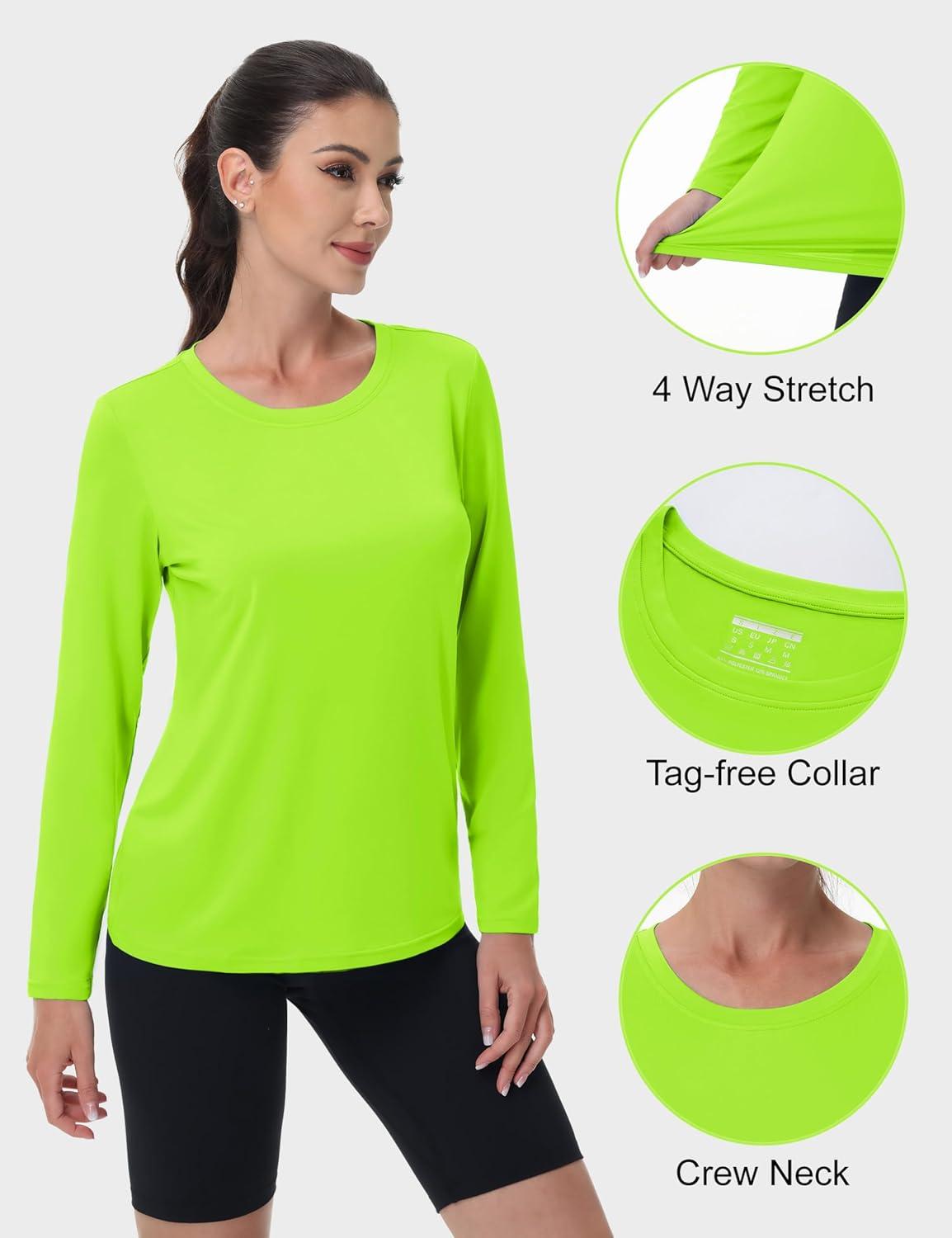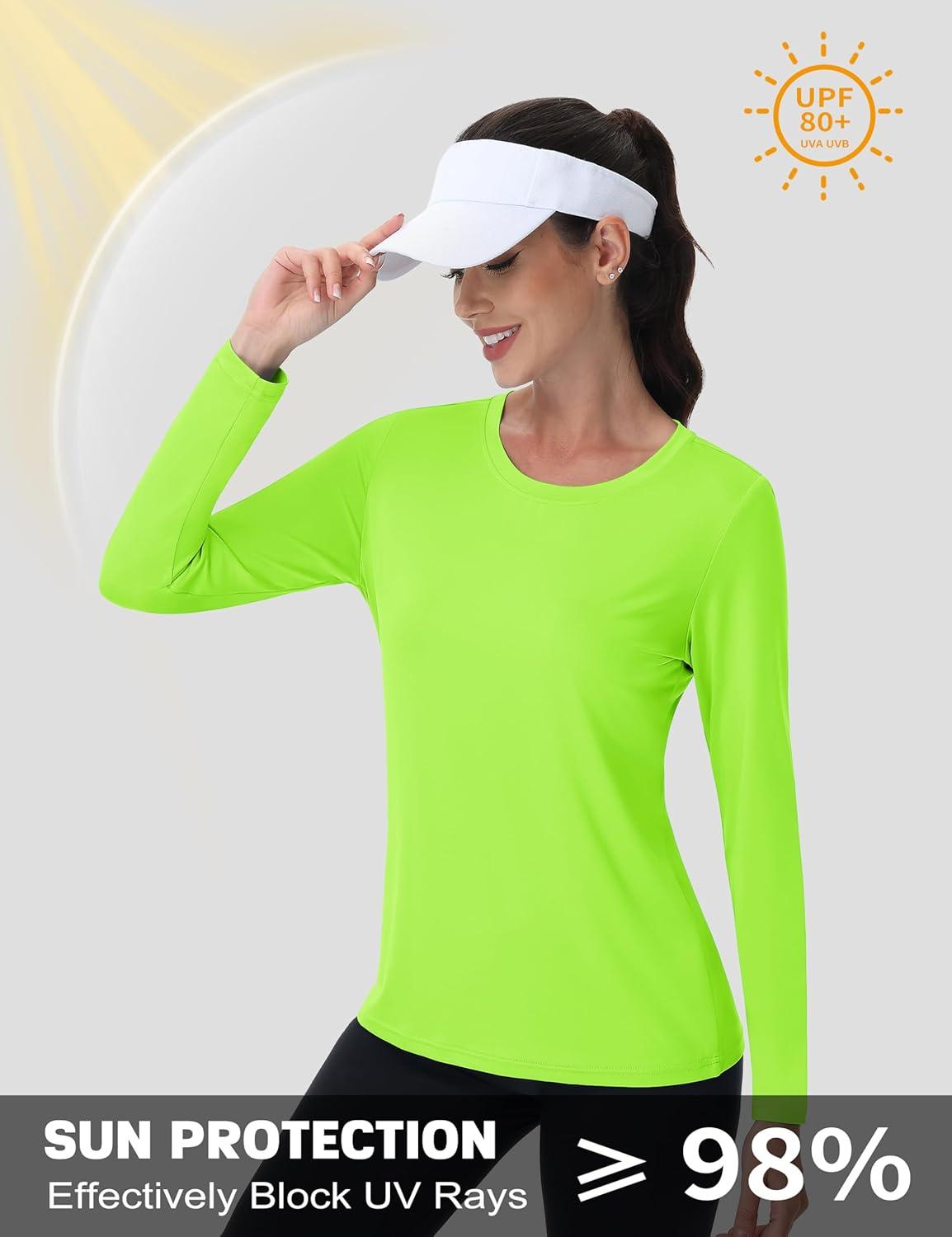 MAGCOMSEN Women’s UPF 80+ Workout Shirts Long Sleeve Atheltic T-Shirt Quick Dry Rash Guard Swim Tops(Neon Green)