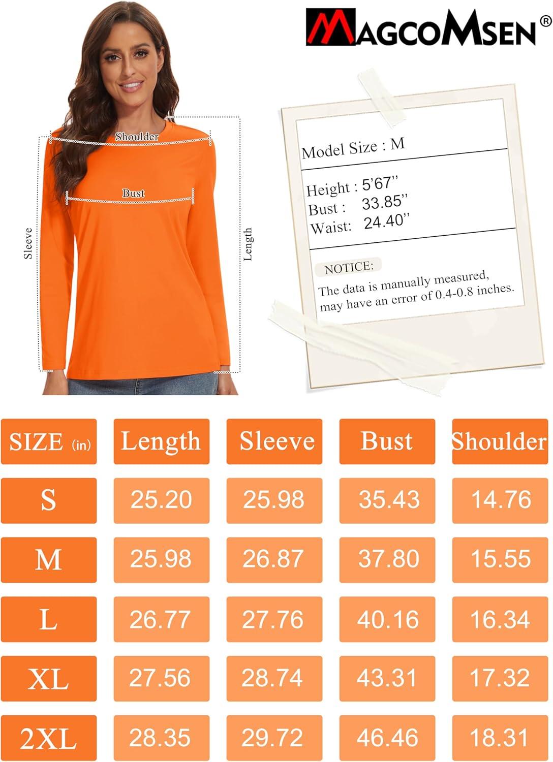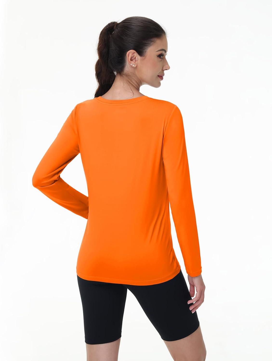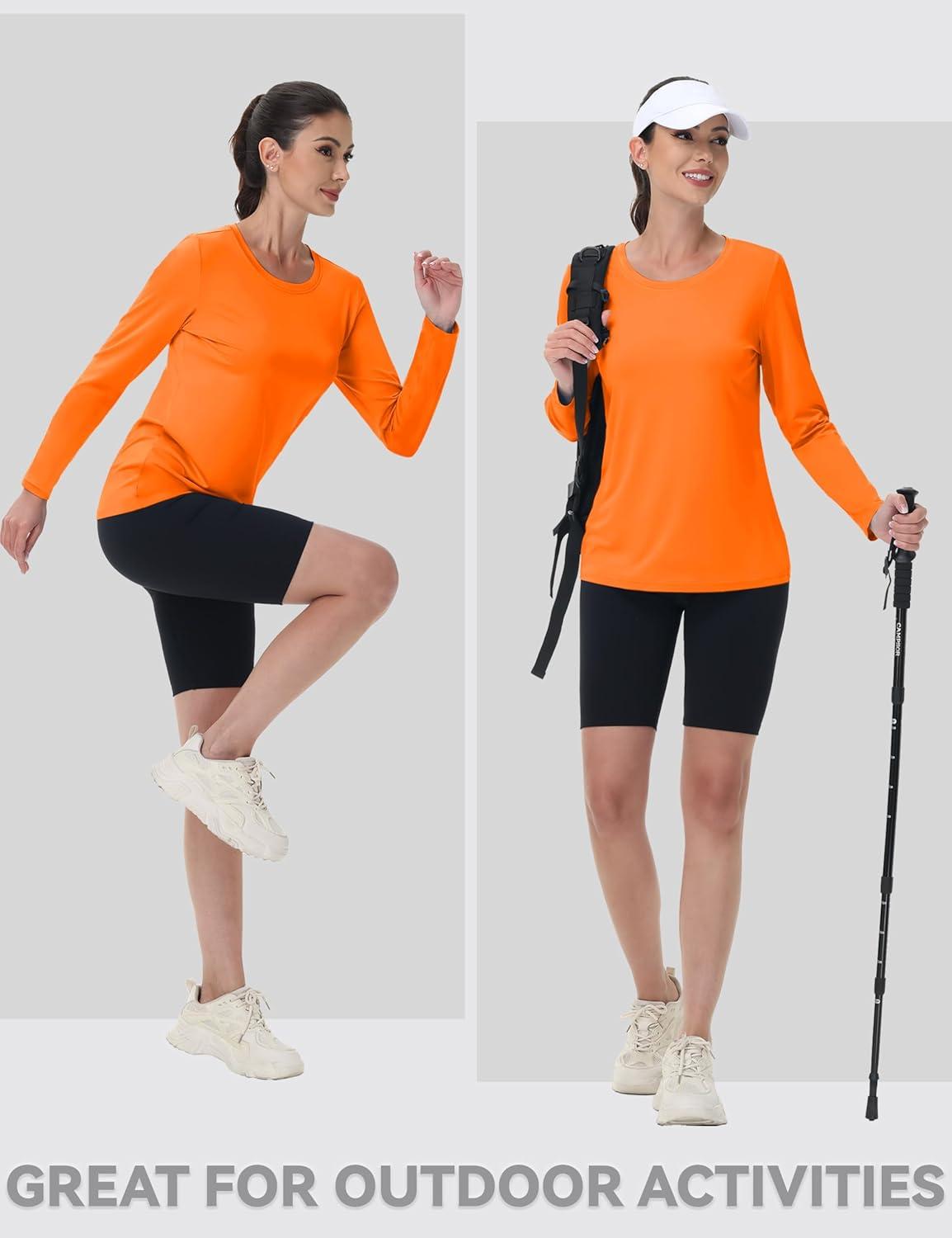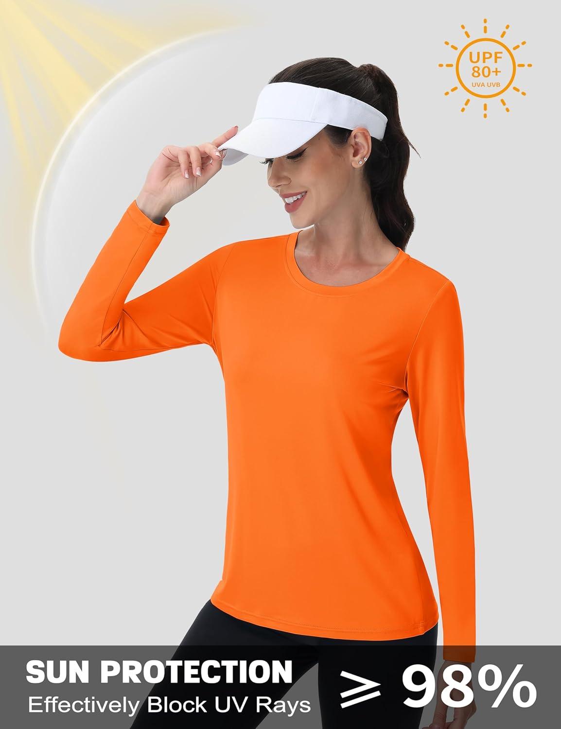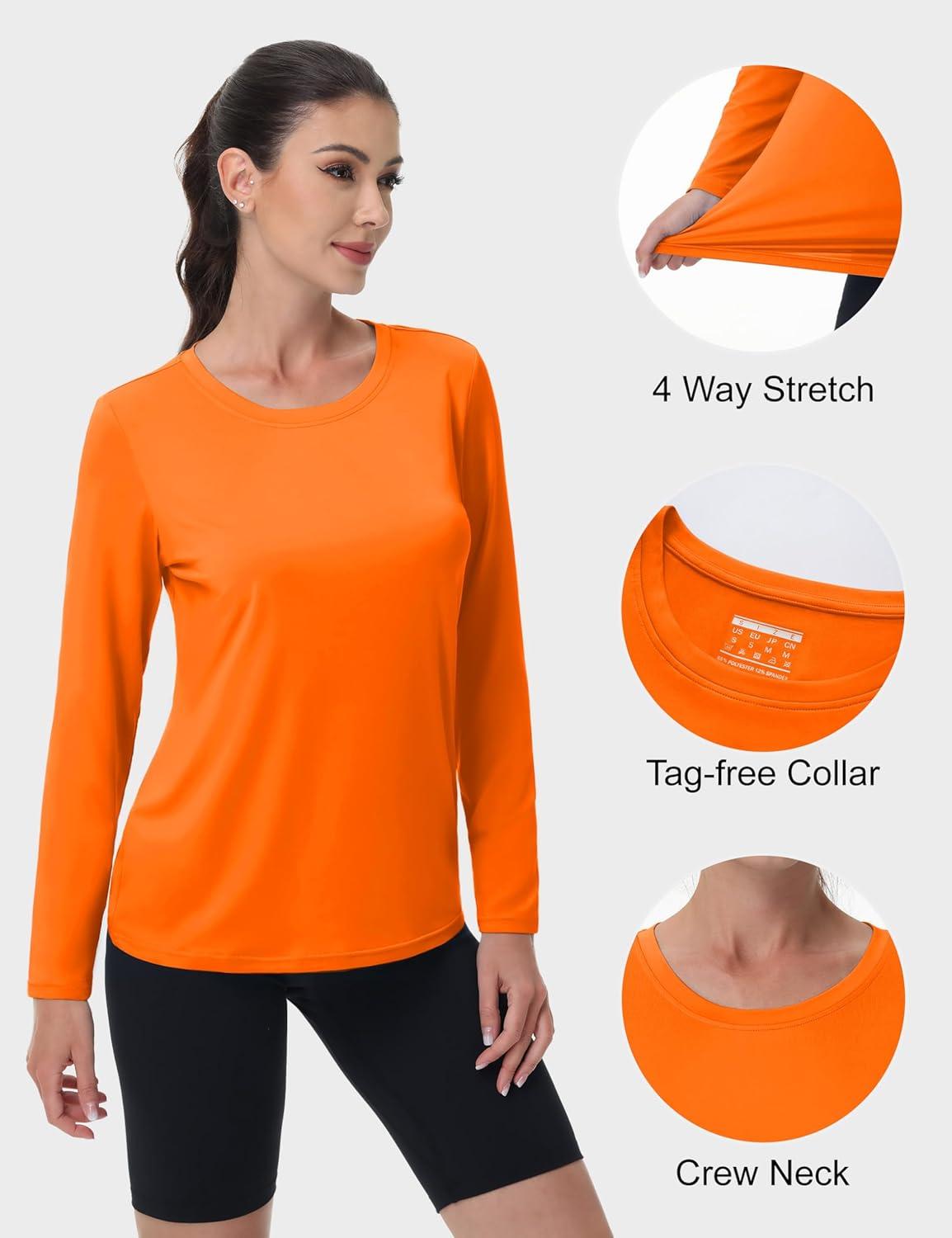 MAGCOMSEN Women’s UPF 80+ Workout Shirts Long Sleeve Atheltic T-Shirt Quick Dry Rash Guard Swim Tops(Neon Orange)