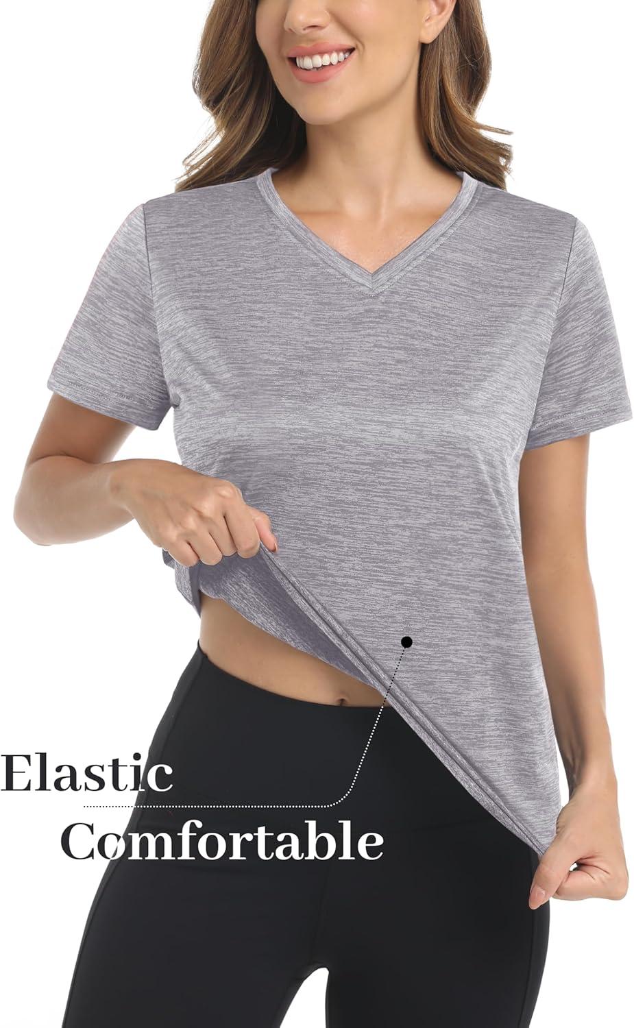 MAGCOMSEN Women’s V Neck Workout Shirts Short Sleeve Moisture Wicking Yoga T-Shirts Quick Dry Athletic Tops(Light Grey)