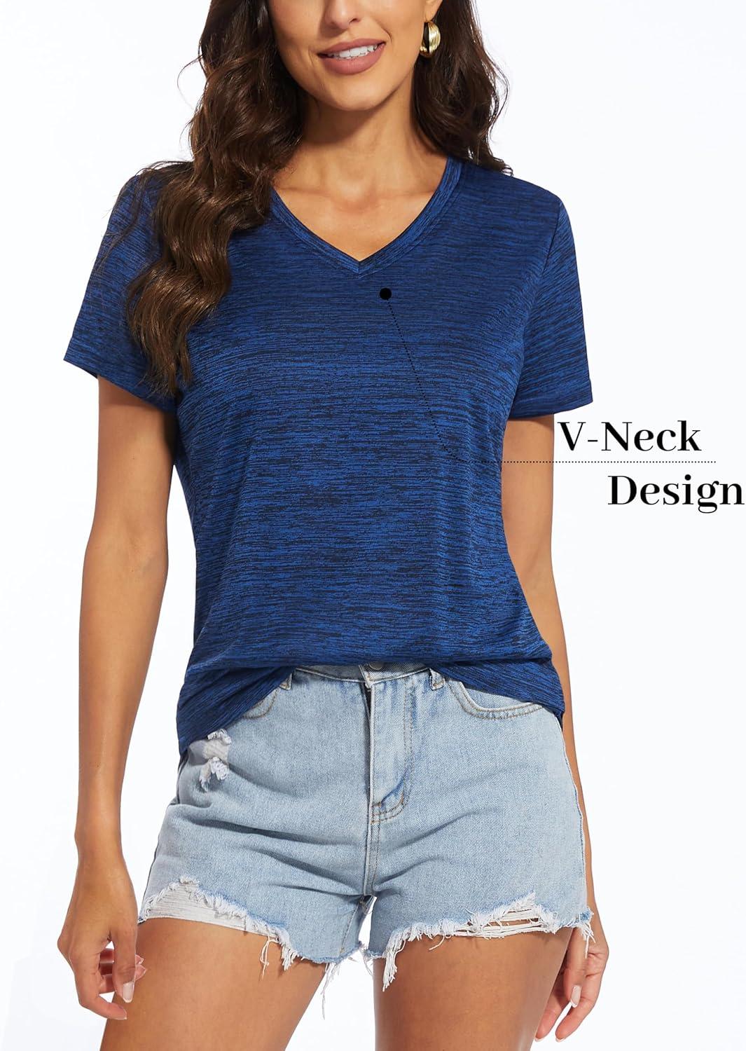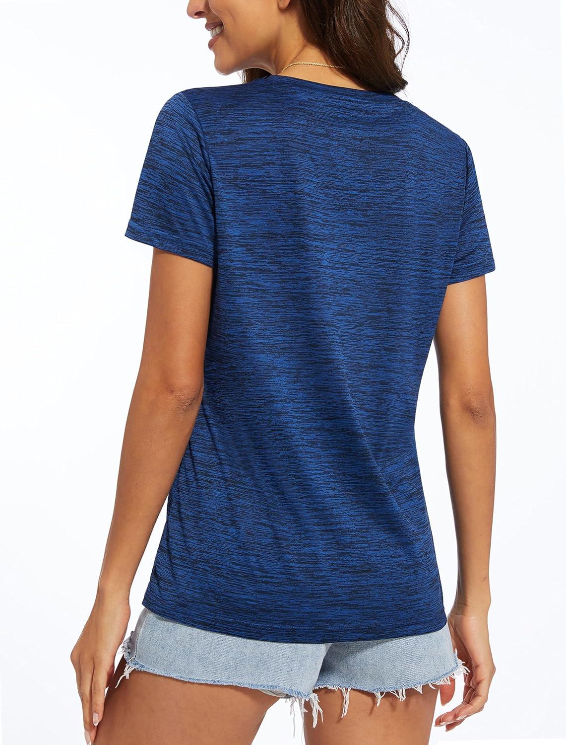 MAGCOMSEN Women’s V Neck Workout Shirts Short Sleeve Moisture Wicking Yoga T-Shirts Quick Dry Athletic Tops(Royal Blue)