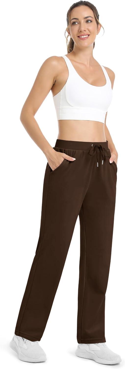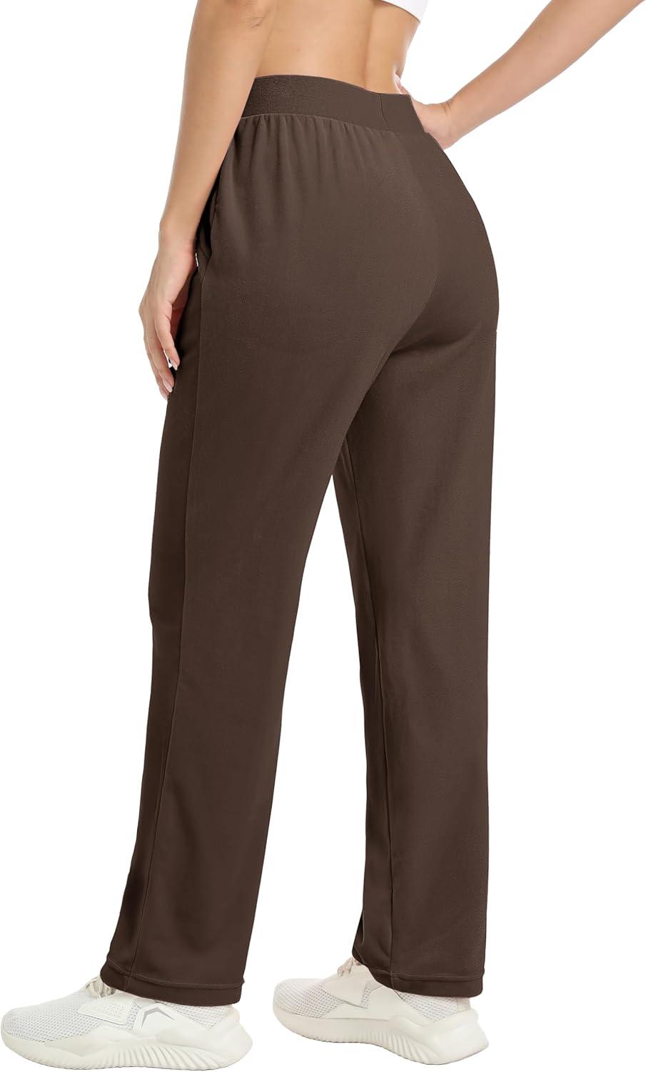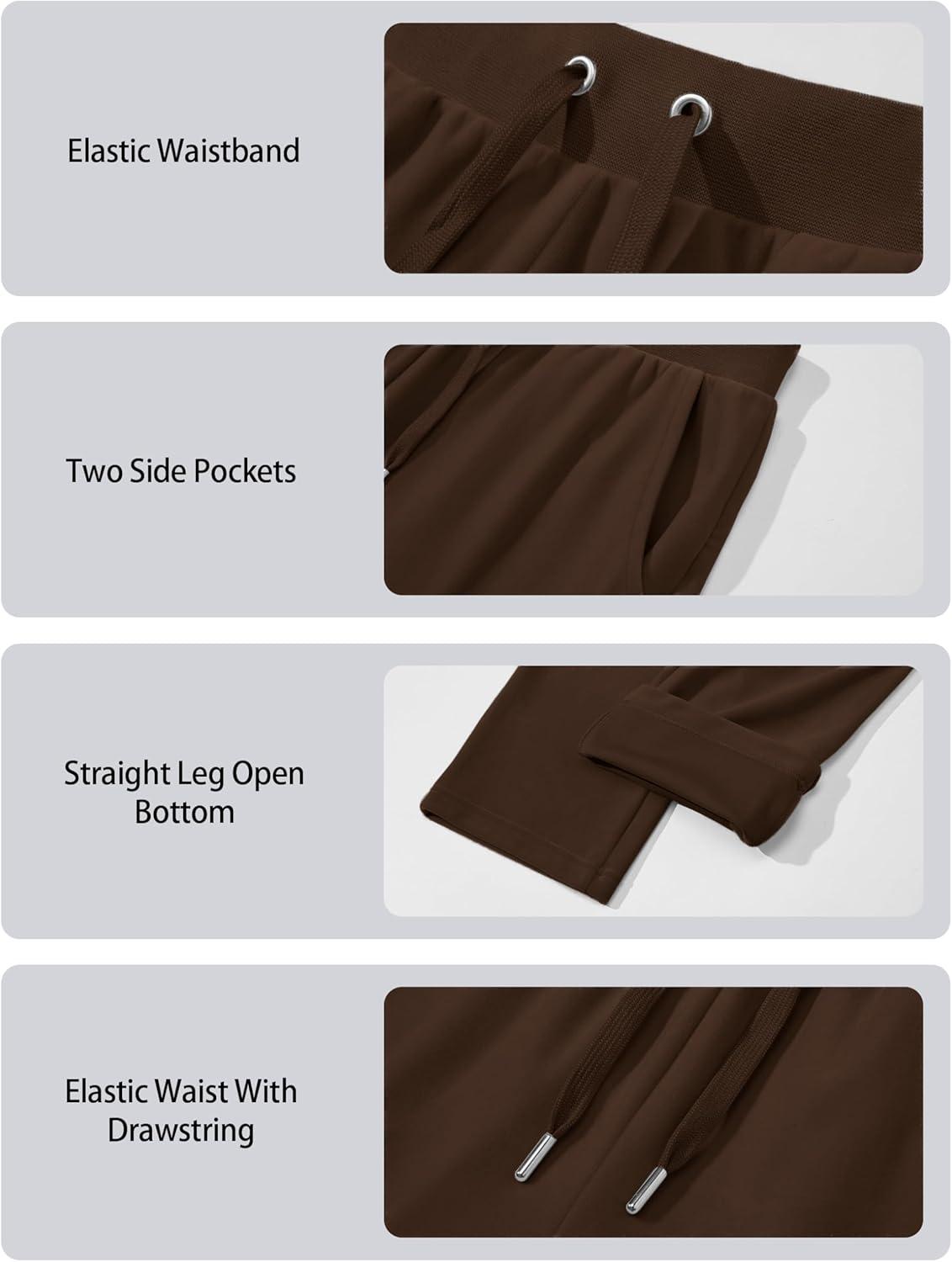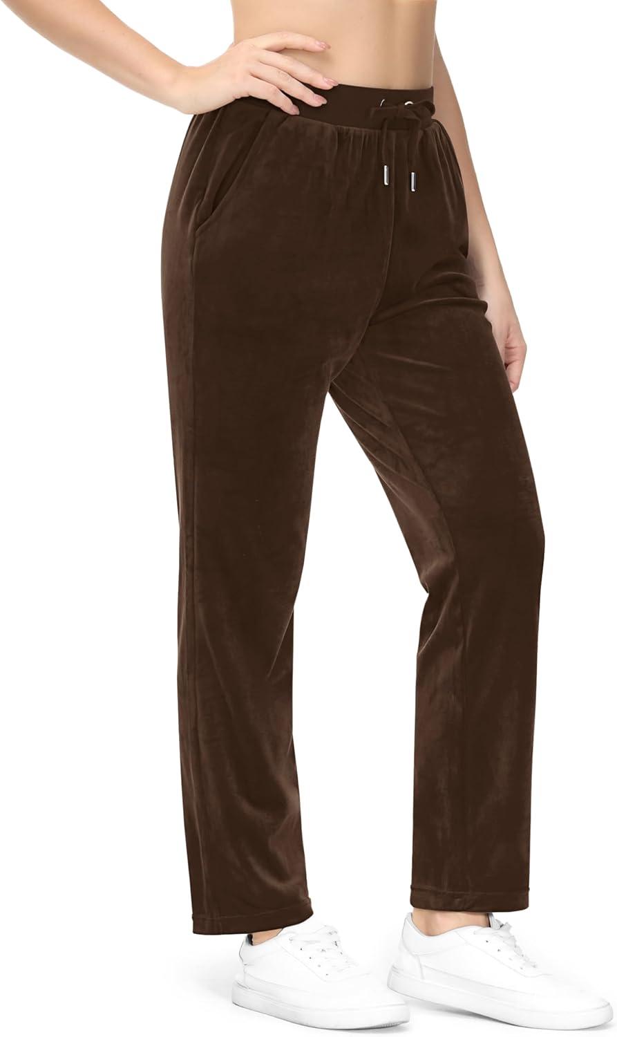 MAGCOMSEN Women’s Velour Pants Soft Velvet Straight Leg Sweatpants Elastic Waist Warm Lounge Pant with Pockets(Coffee)