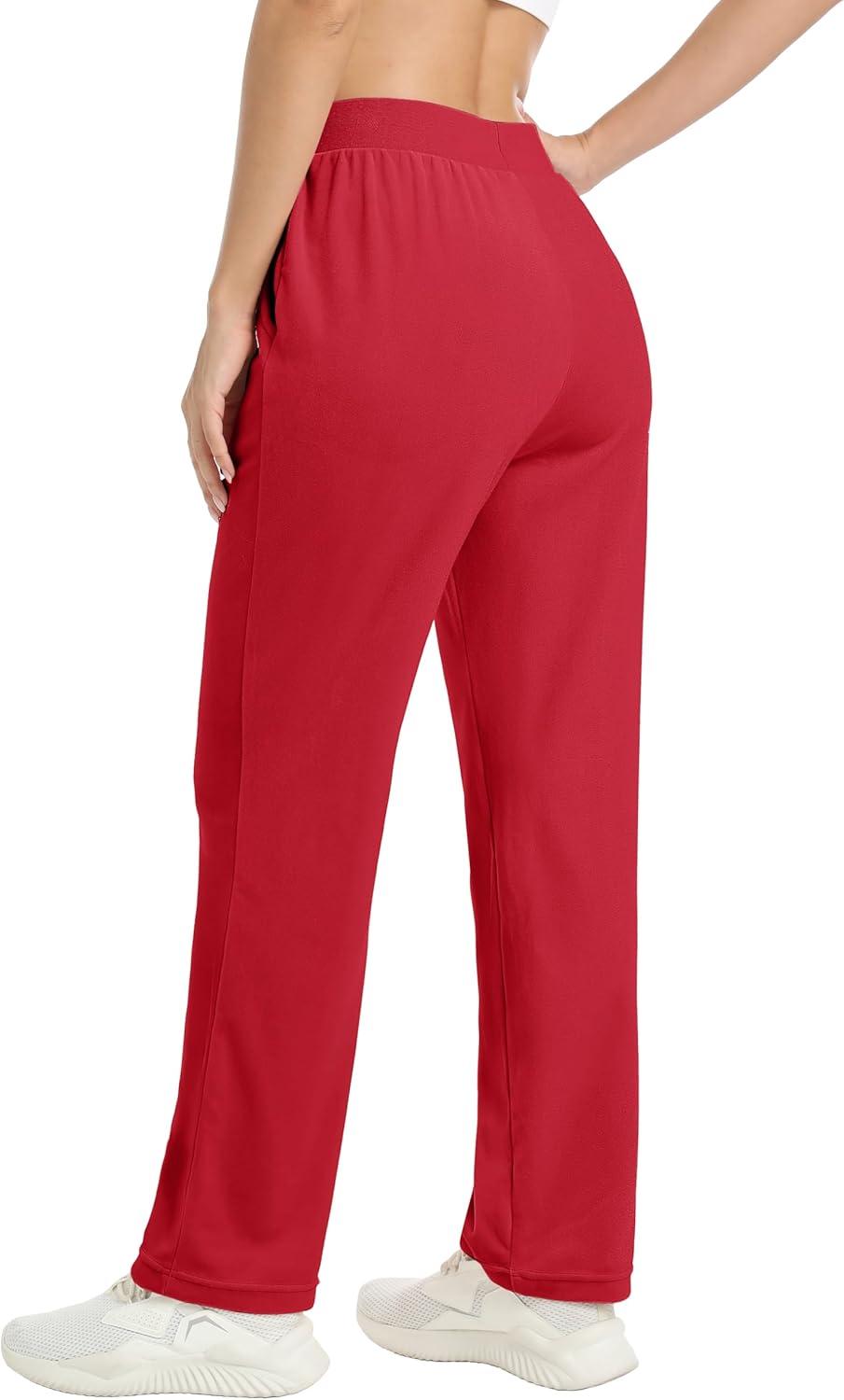 MAGCOMSEN Women’s Velour Pants Soft Velvet Straight Leg Sweatpants Elastic Waist Warm Lounge Pant with Pockets(Tomato)