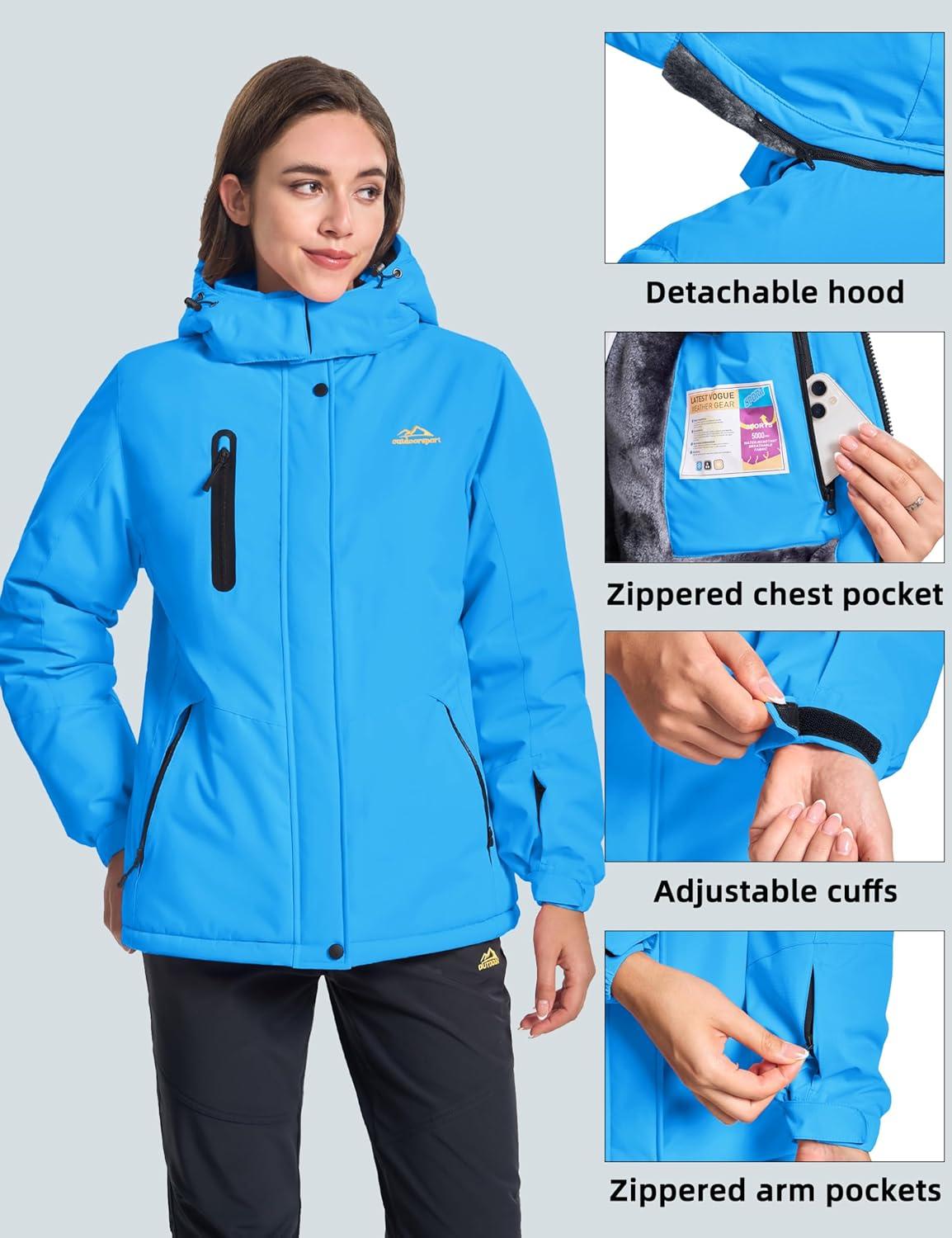 MAGCOMSEN Women’s Winter Coats Waterproof Insulated Snow Ski Jacket Hood Fleece Lined Warm Mountain Snowboarding Windbreaker(Moonorchid)