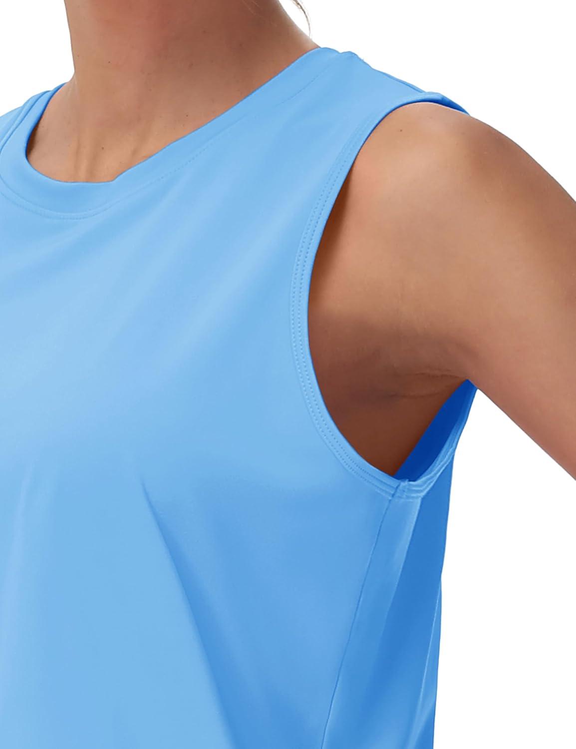 MAGCOMSEN Women’s Workout Cropped Tops UPF 50+ Athletic Running Tank Tops Sleeveless Gym Sports Muscle Shirts(Waterfall Blue)