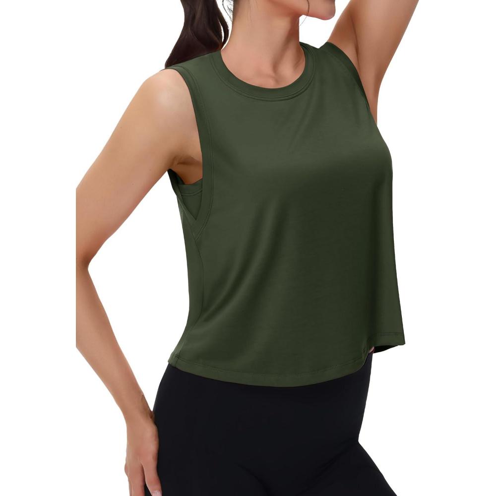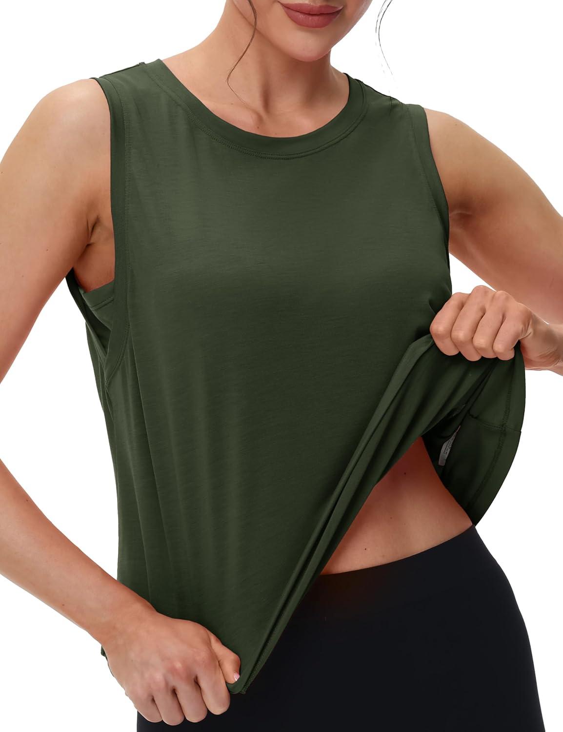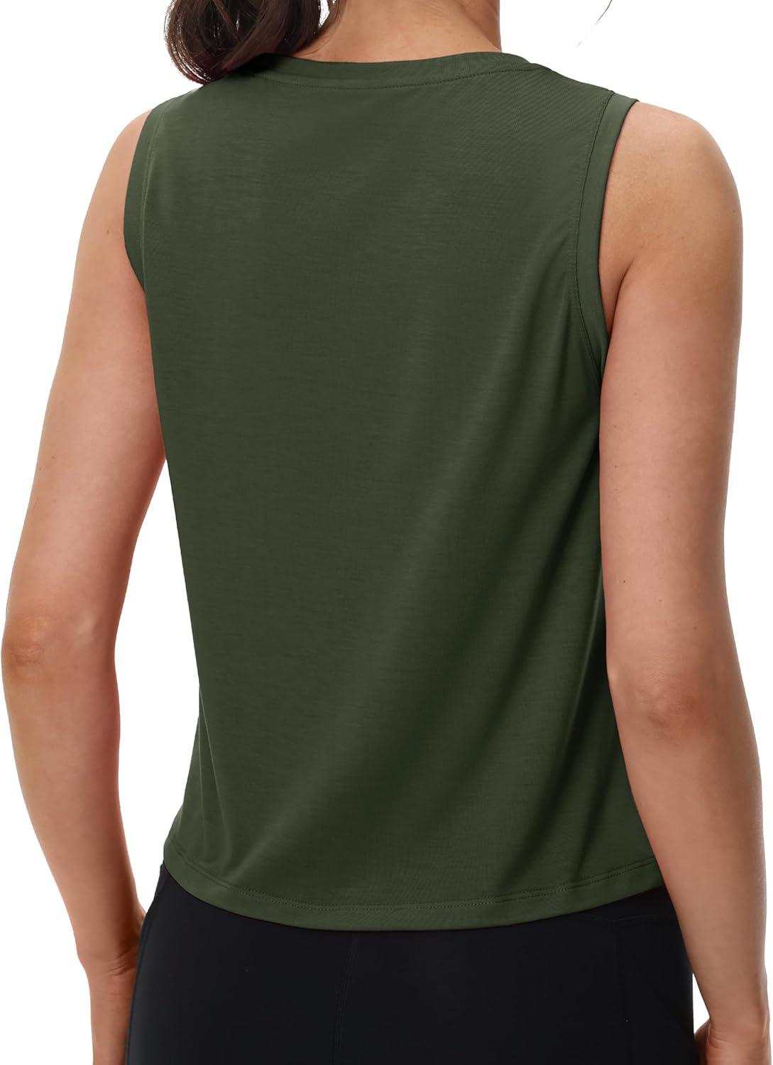 MAGCOMSEN Women’s Workout Tank Tops Crop Sleeveless Athletic Moisture Wicking Loose Fit Summer Shirt(Armygreen)