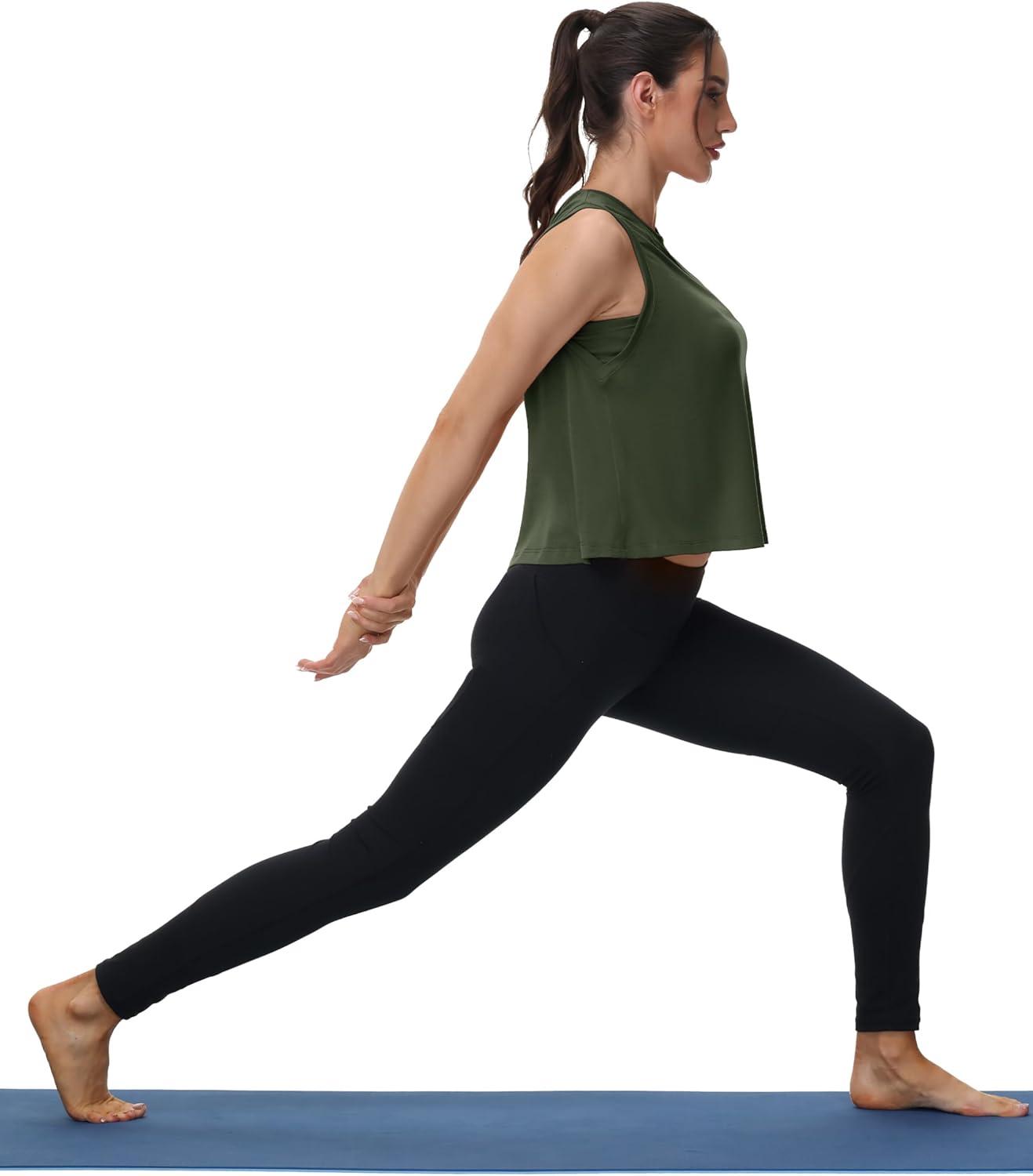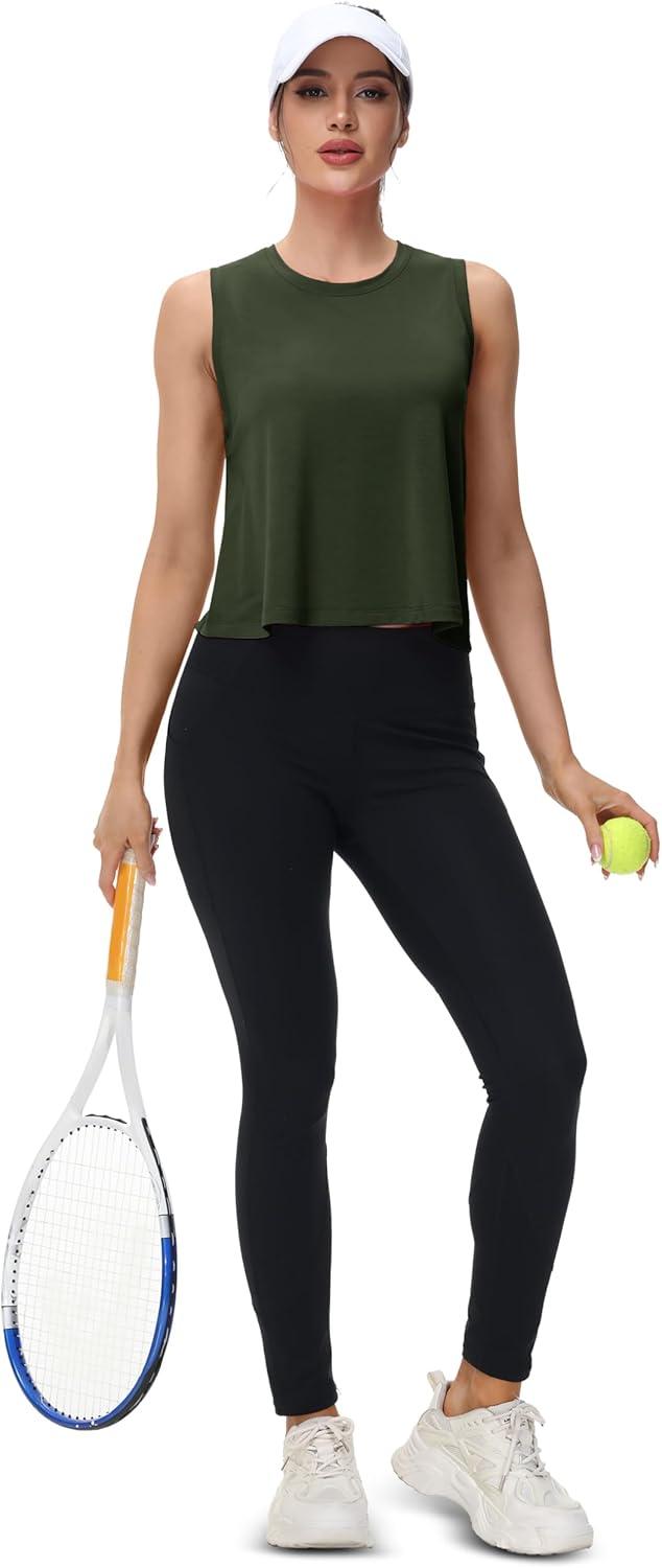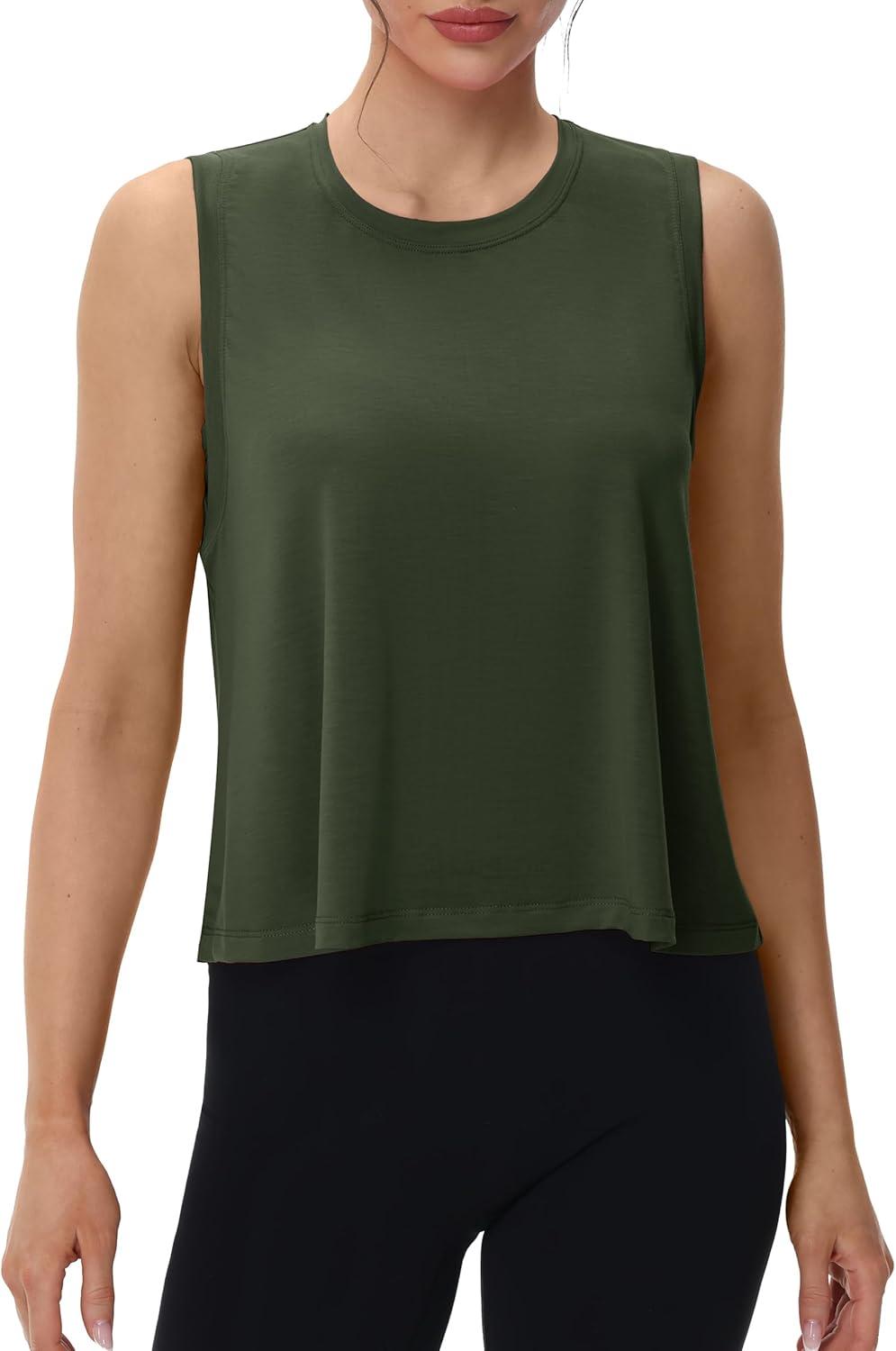 MAGCOMSEN Women’s Workout Tank Tops Crop Sleeveless Athletic Moisture Wicking Loose Fit Summer Shirt(Armygreen)