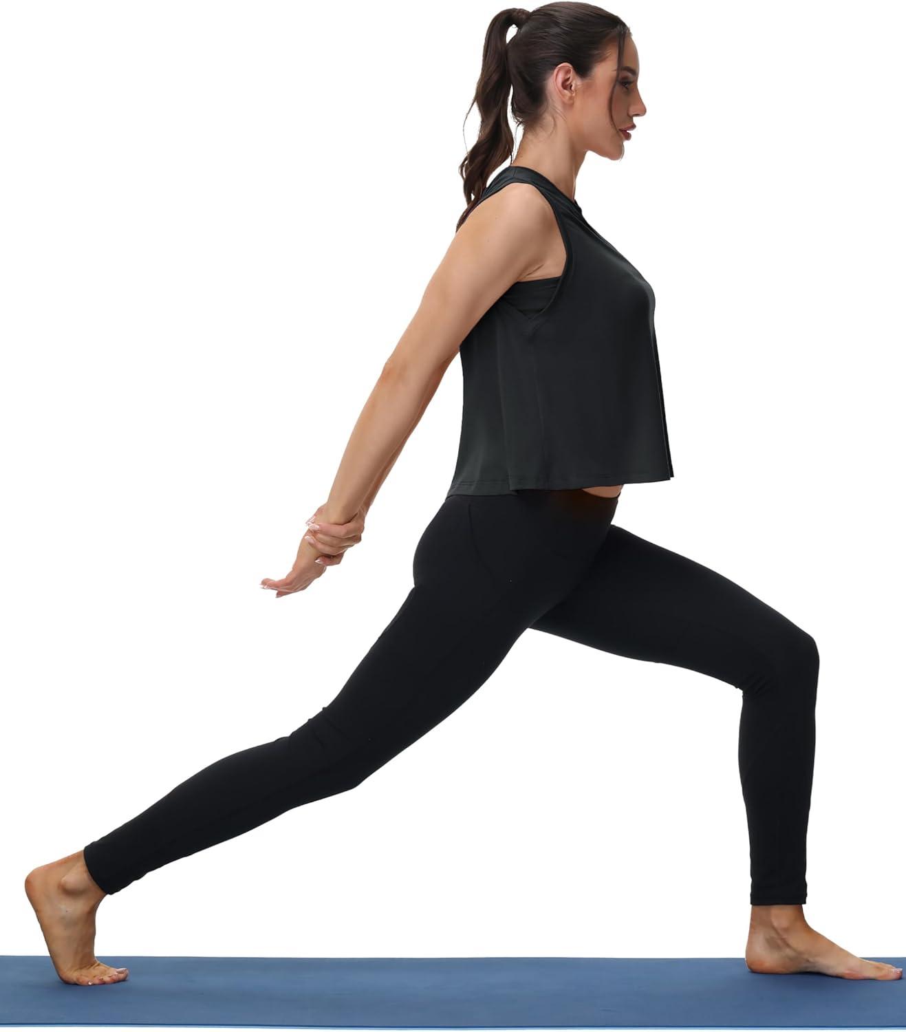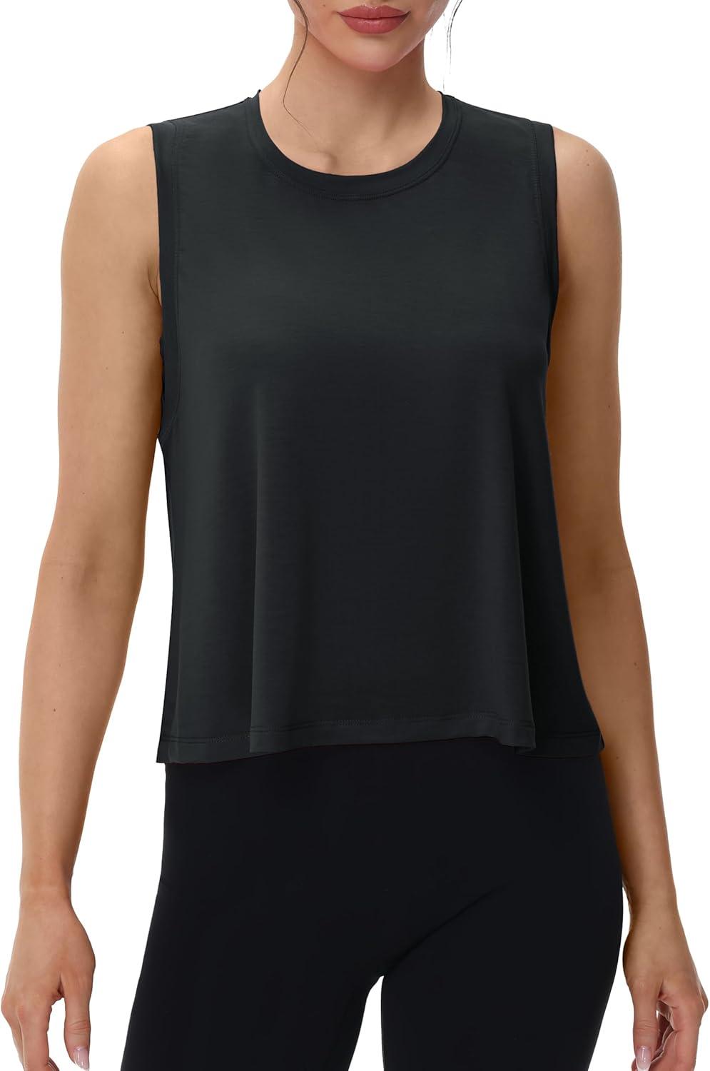 MAGCOMSEN Women’s Workout Tank Tops Crop Sleeveless Athletic Moisture Wicking Loose Fit Summer Shirt(Black)