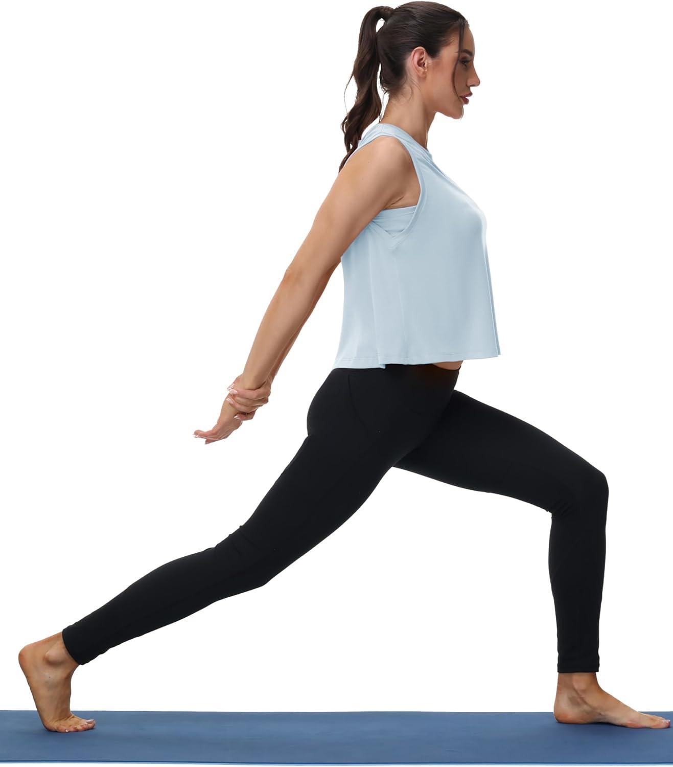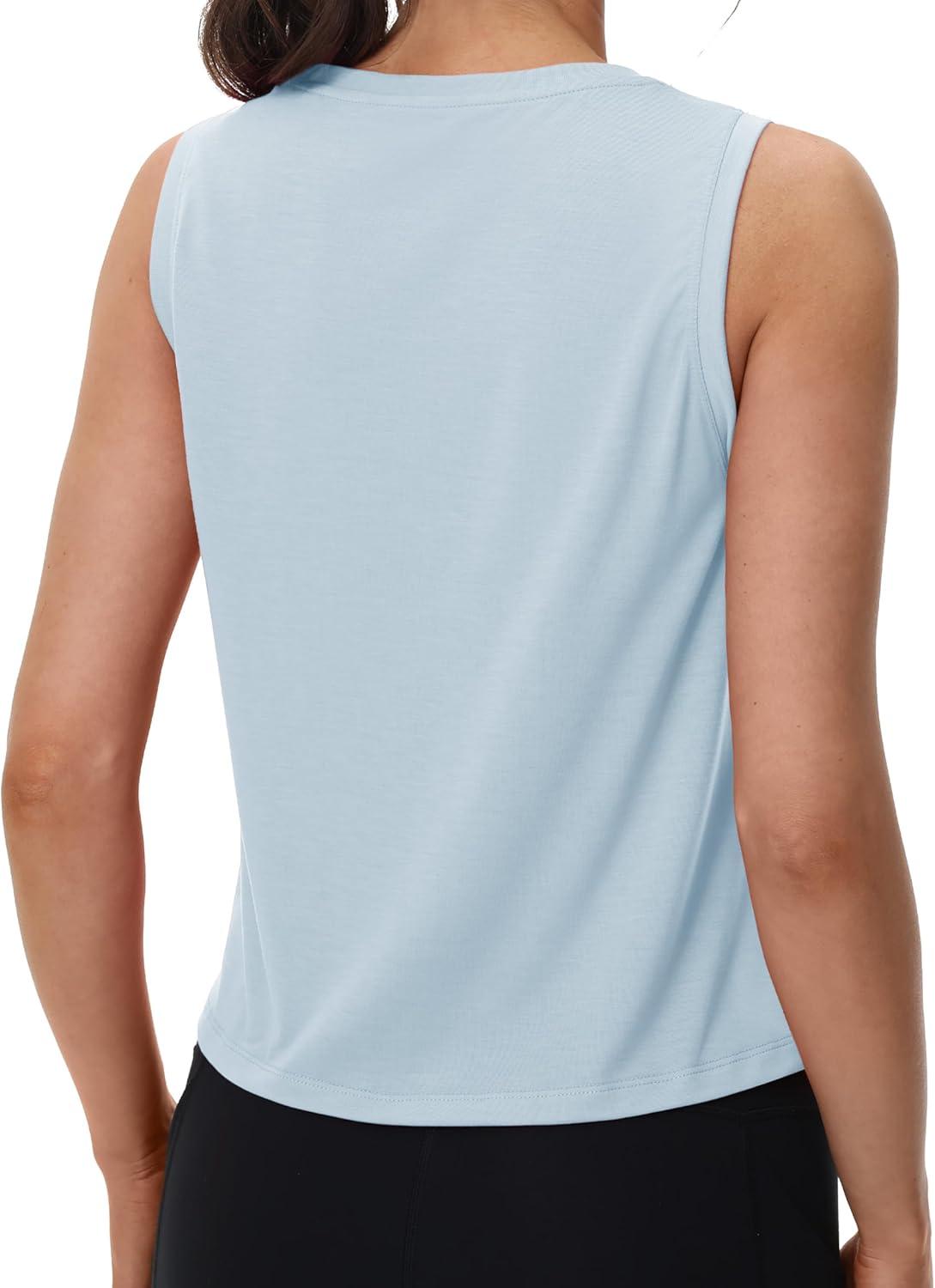 MAGCOMSEN Women’s Workout Tank Tops Crop Sleeveless Athletic Moisture Wicking Loose Fit Summer Shirt(Lsblue)