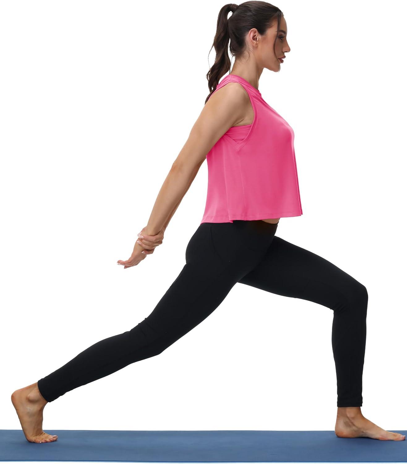 MAGCOMSEN Women’s Workout Tank Tops Crop Sleeveless Athletic Moisture Wicking Loose Fit Summer Shirt(Rosered)
