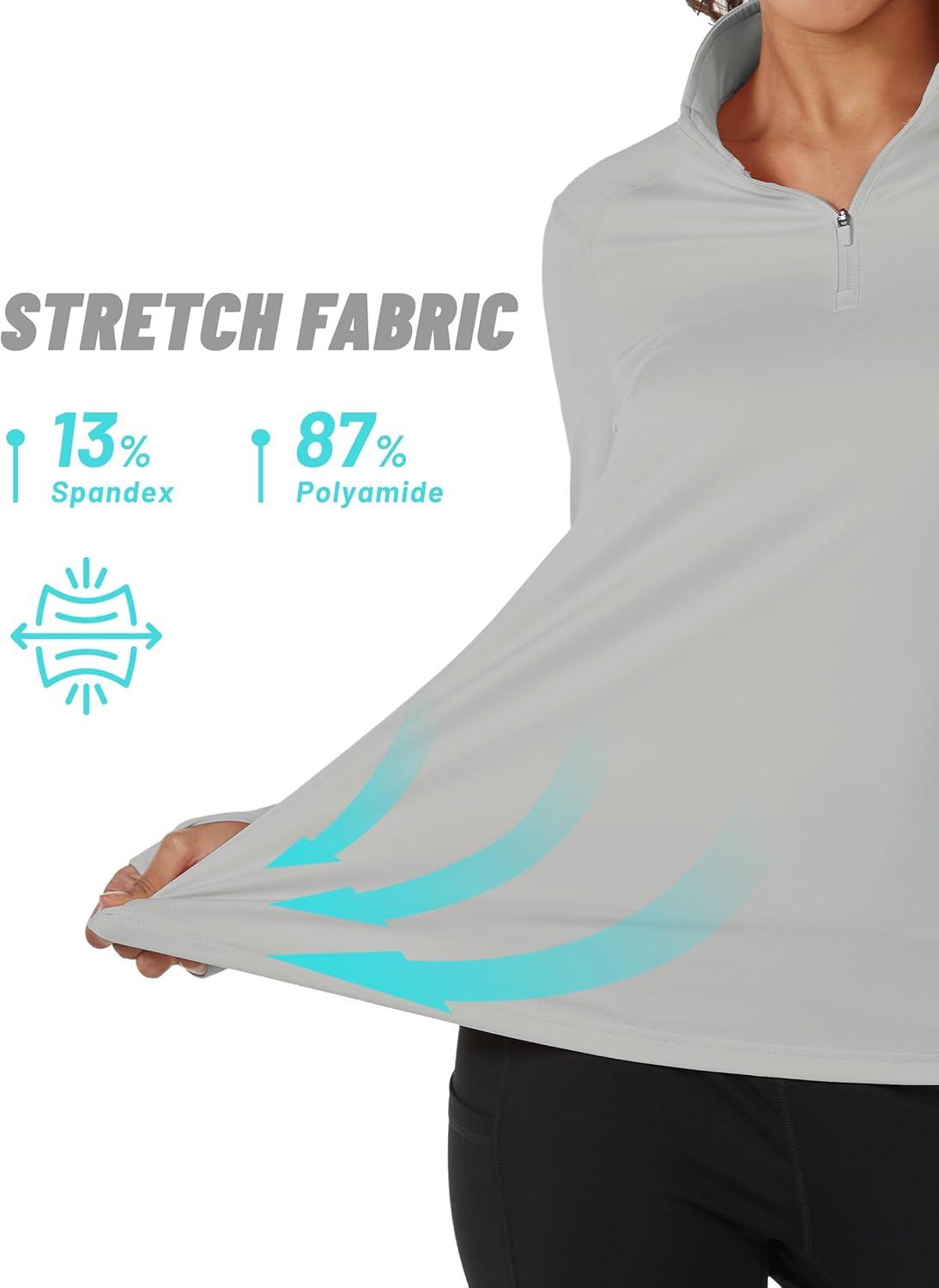 TACVASEN Women’s Fleece Pullover Quarter Zip Sweatshirt Thermal Shirts Long Sleeve Athletic Tops(Light Grey)