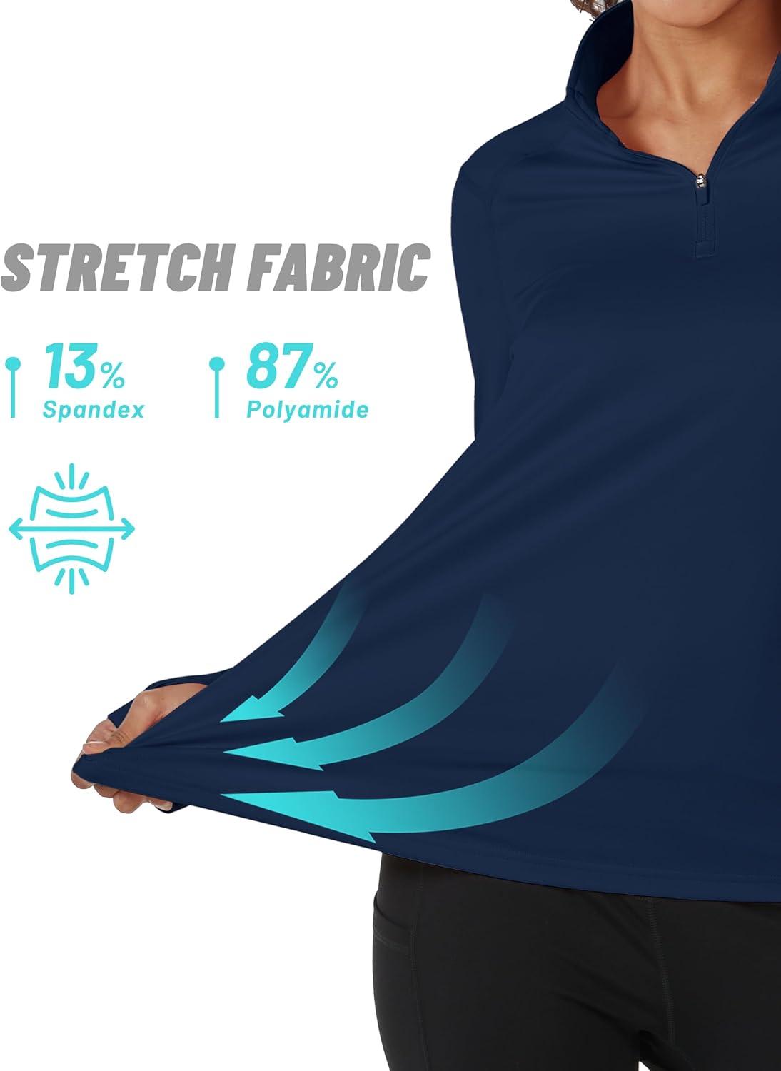 TACVASEN Women’s Fleece Pullover Quarter Zip Sweatshirt Thermal Shirts Long Sleeve Athletic Tops(Navy)