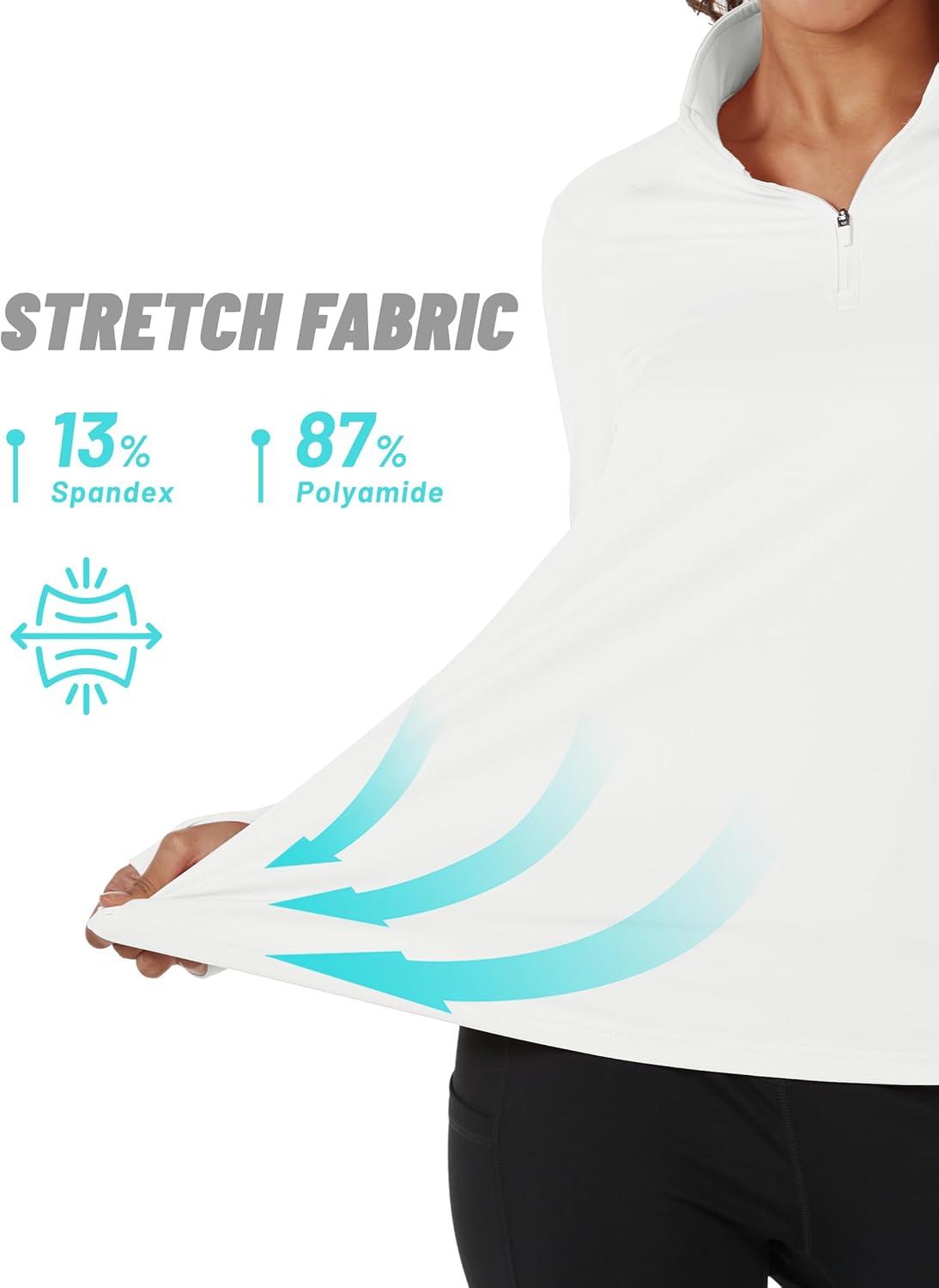TACVASEN Women’s Fleece Pullover Quarter Zip Sweatshirt Thermal Shirts Long Sleeve Athletic Tops(White)